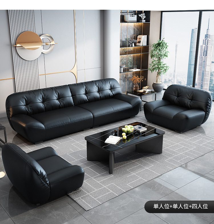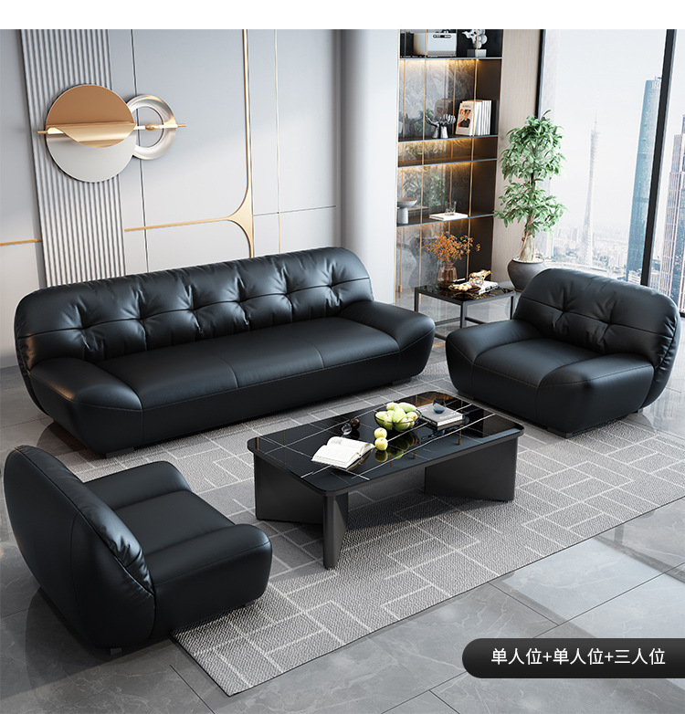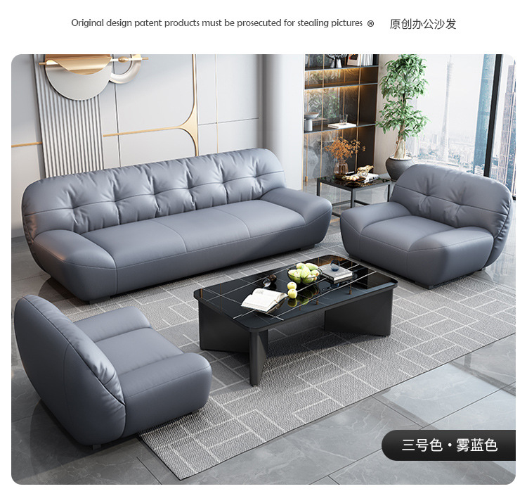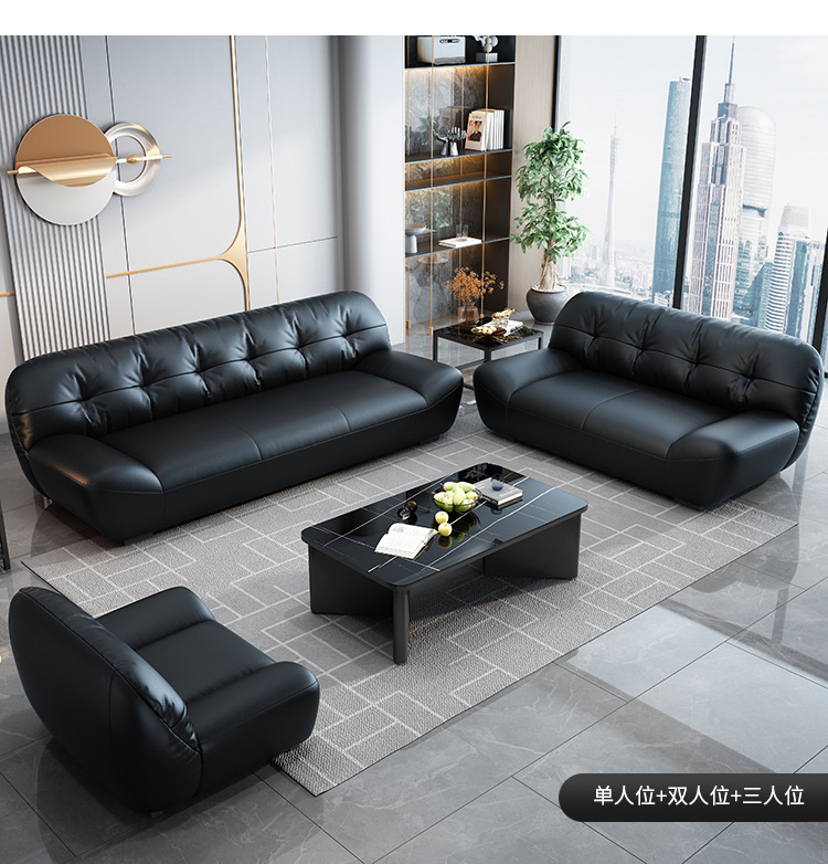 新型オフィスソファー現代シンプルな接客三人ビジネス社長ソファー茶卓の組み合わせ