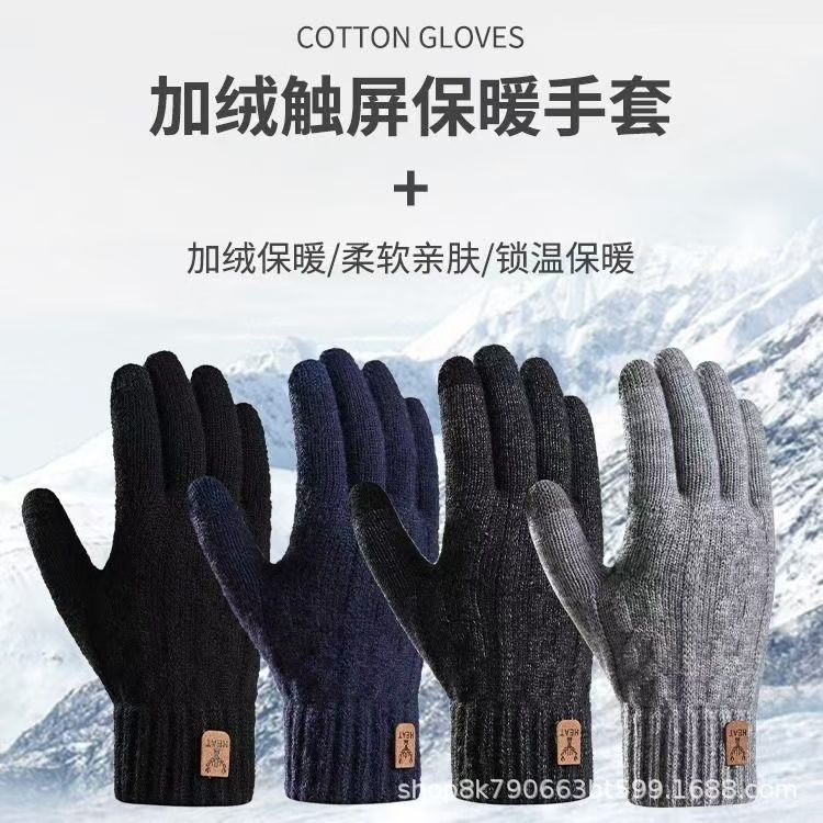 手套男冬季棉手套不露手指可触屏防寒保暖线手套户外居家保暖手套