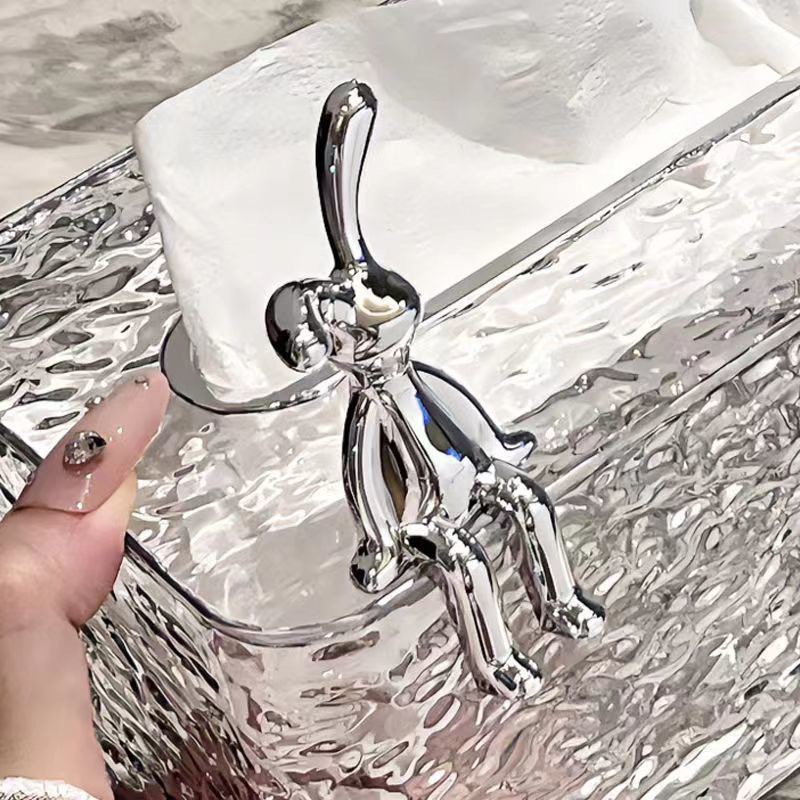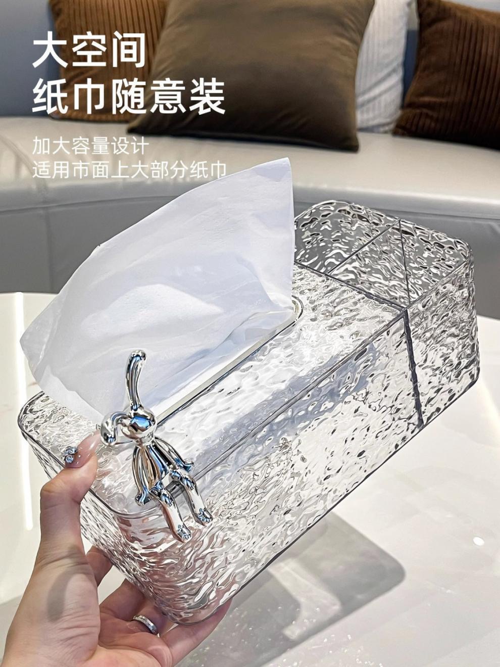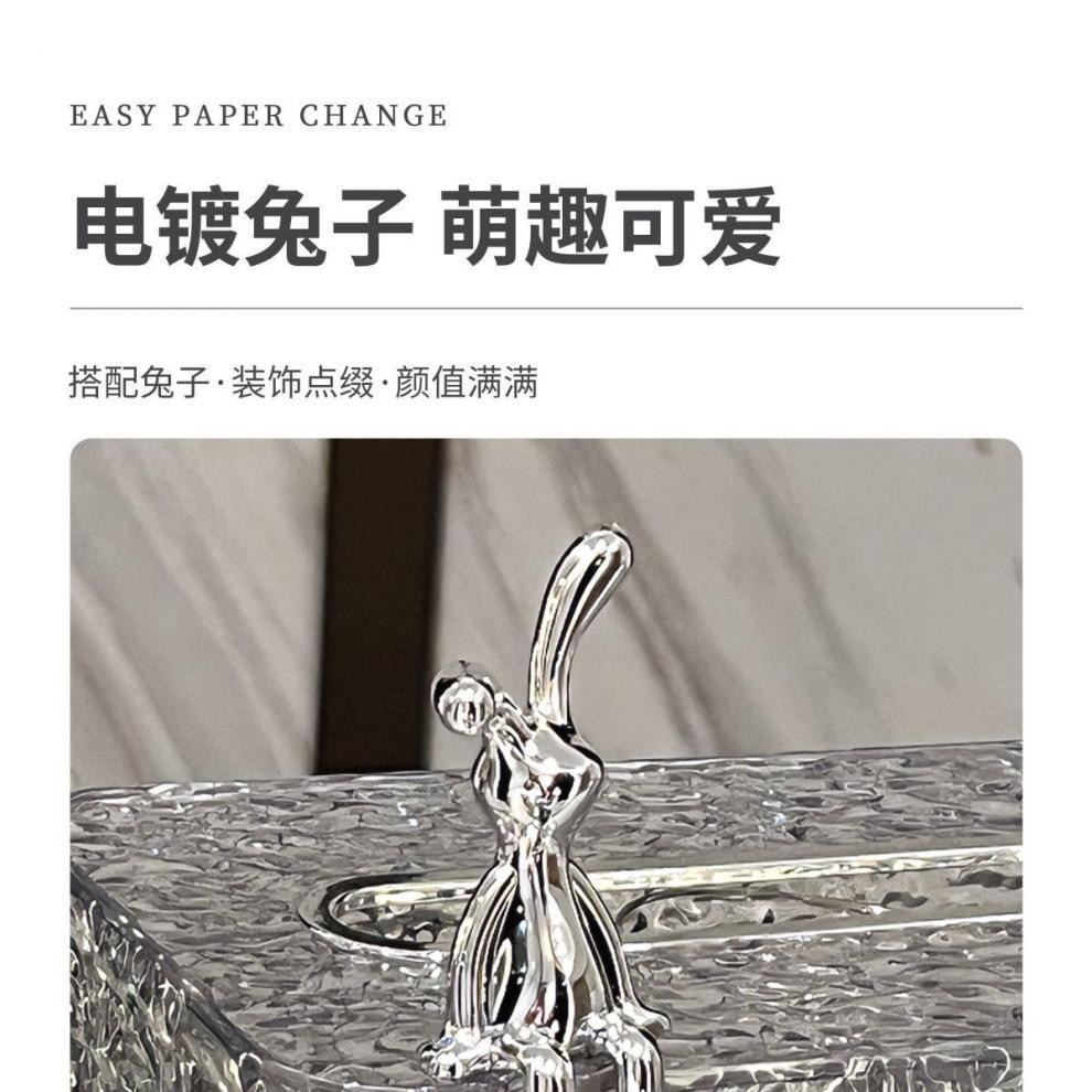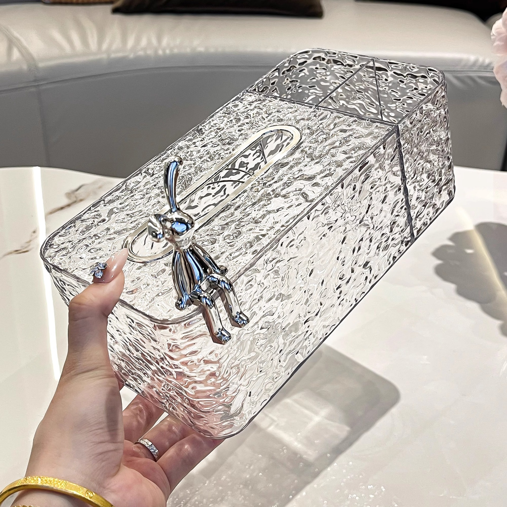 透明なシルバーのティッシュボックス,透明なグレーのティッシュボックス,クリーミーホワイトのスマイリーティッシュボックス,透明なシルバーのティッシュボックスとウサギ,ウサギ付きの透明なグレーのティッシュボックス,乳白色のスマイリーティッシュボックスとウサギ