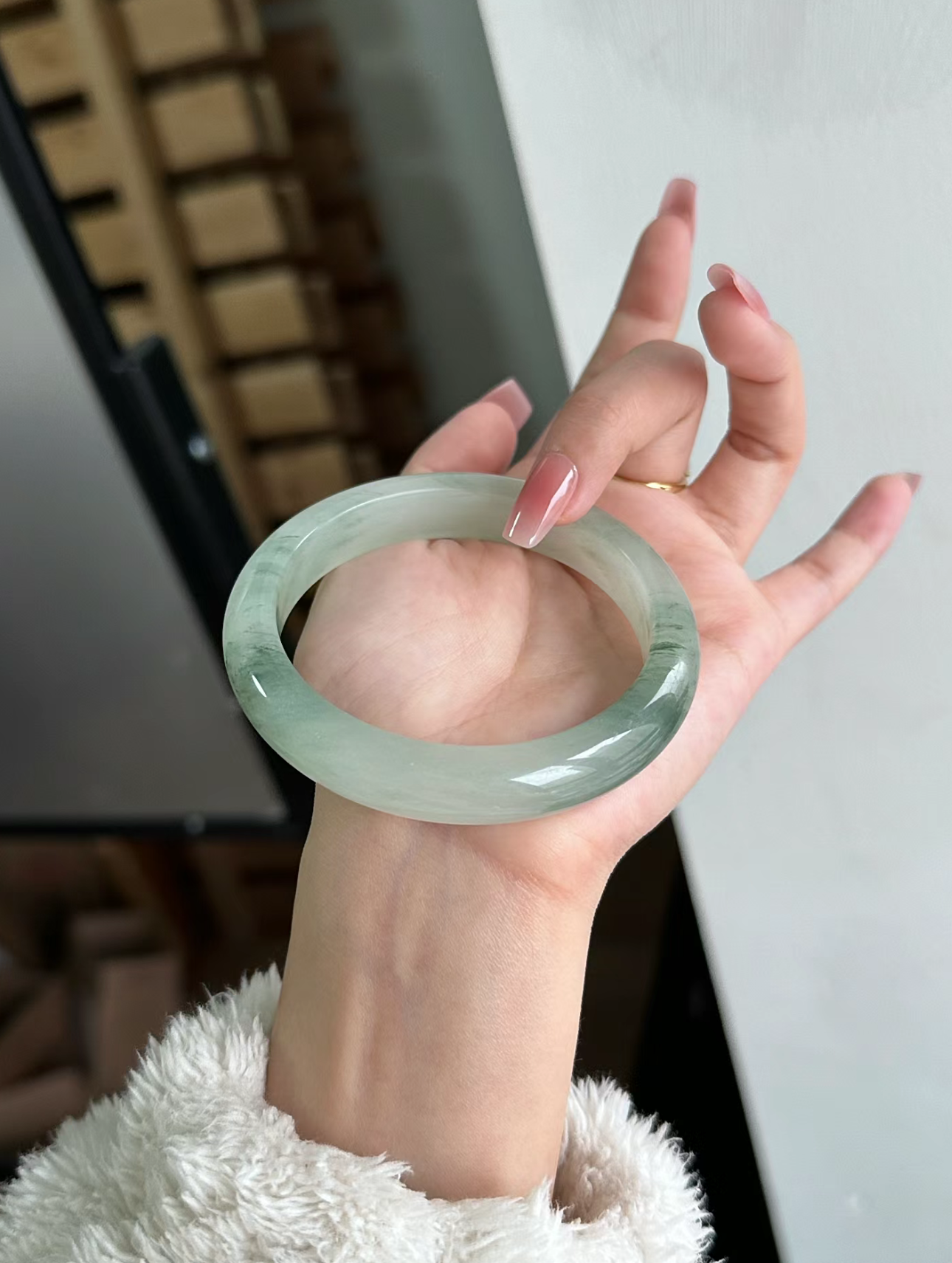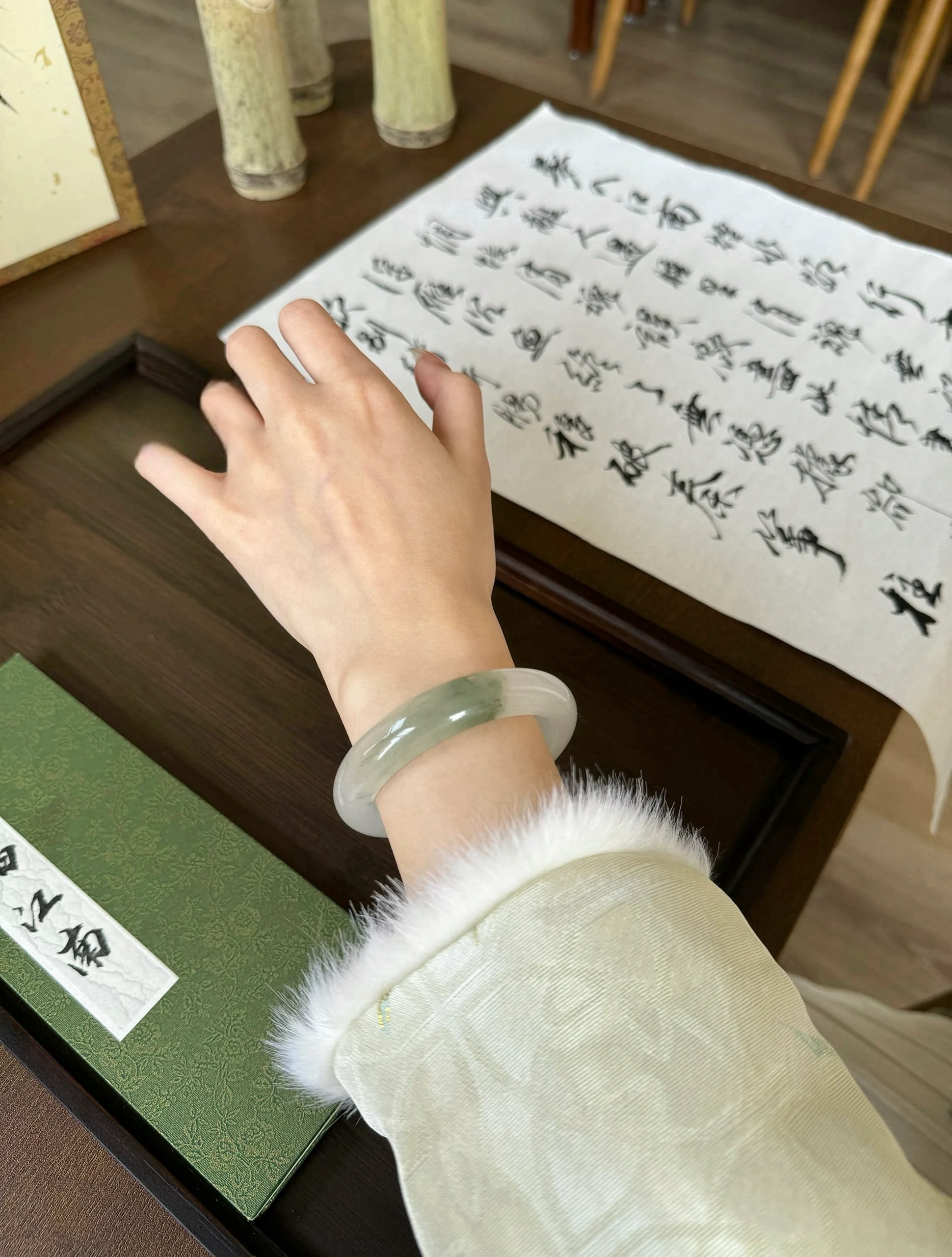 新疆和天翡翠のブレスレットは油っぽく、ひび割れがなく、湖の光が手首に残り、湖の多様性が発揮されます。