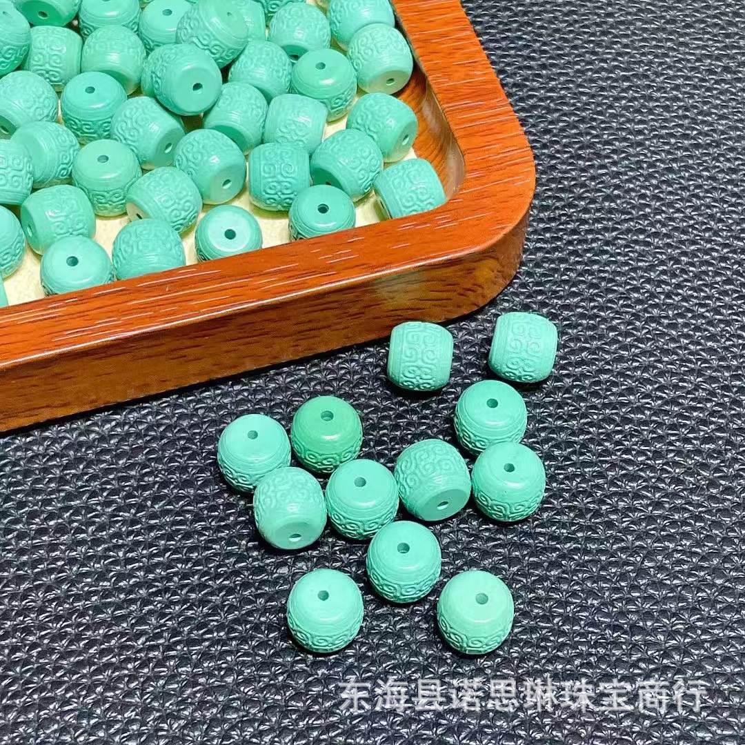 二代绿松石仿松石配件莲花珠桶珠元宝宝宝佛串珠挂件DIY文玩饰品