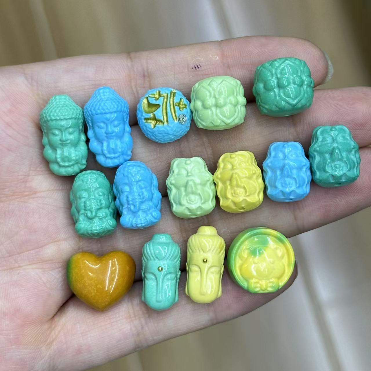 高瓷菱镁矿绿松石长脸佛象神九尾狐并蒂莲配件手工diy文玩时尚配
