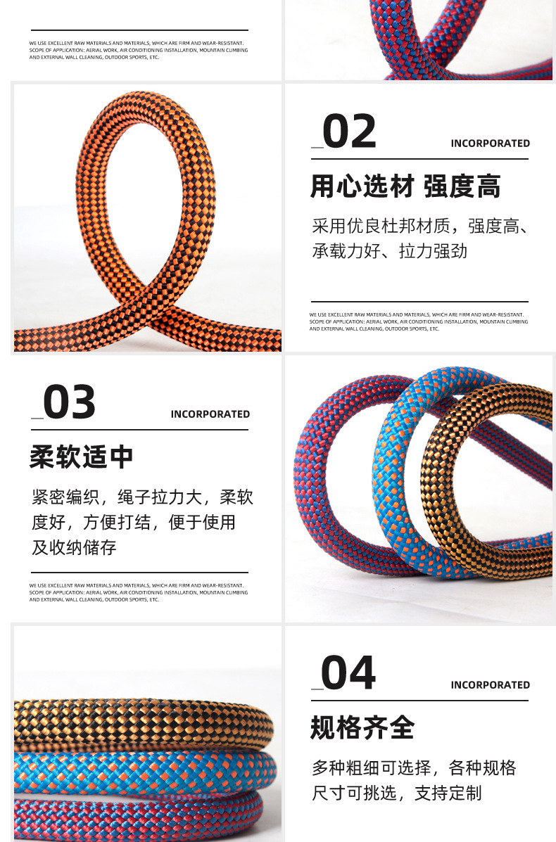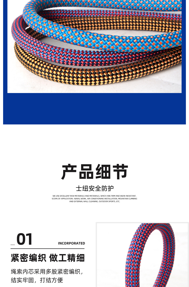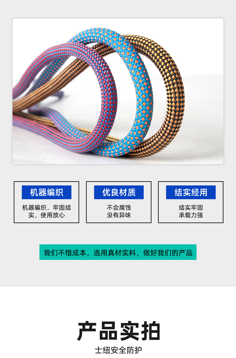 登山ロープメーカー屋外ロッククライミングポリエステル登山ロープ安全ロープ高所作業ロープナイロンロープ静力ロープ