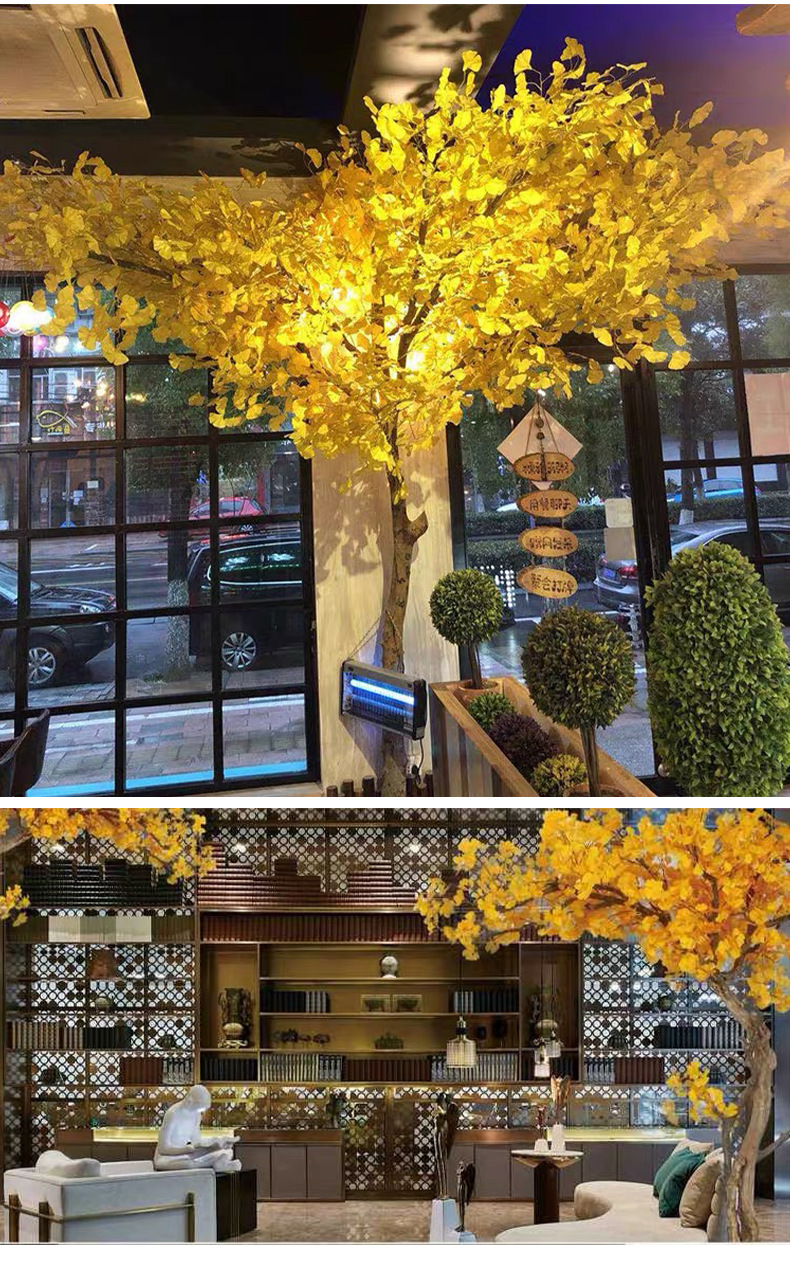 仿真银杏树假树大型室内装饰树绿植黄色树室内酒店客厅造景树摆件