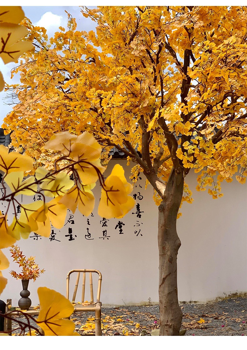 仿真银杏叶树枝秋季造景叶子高品质树叶婚庆装饰塑料人造假绿植