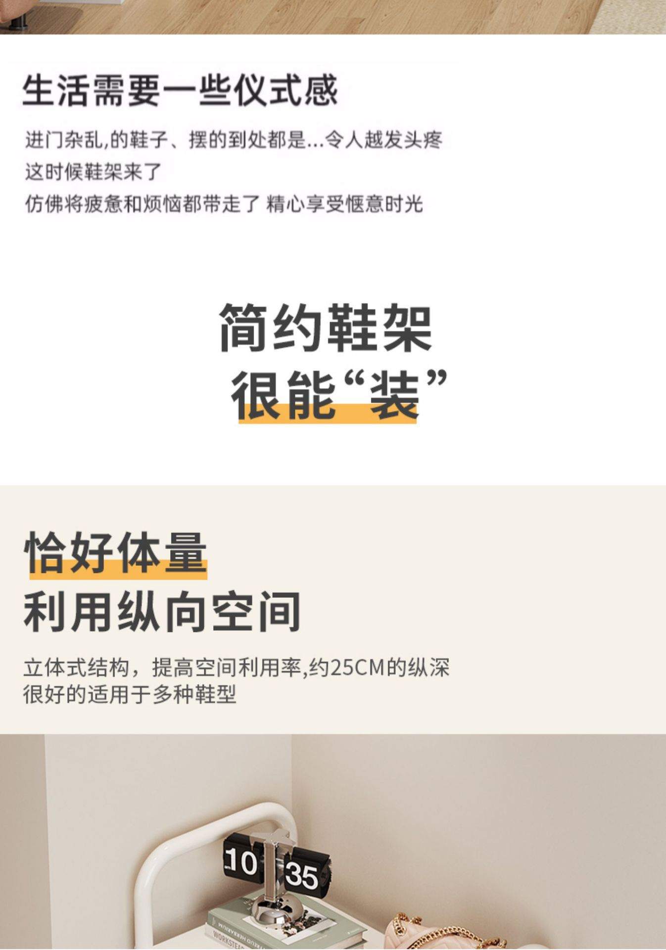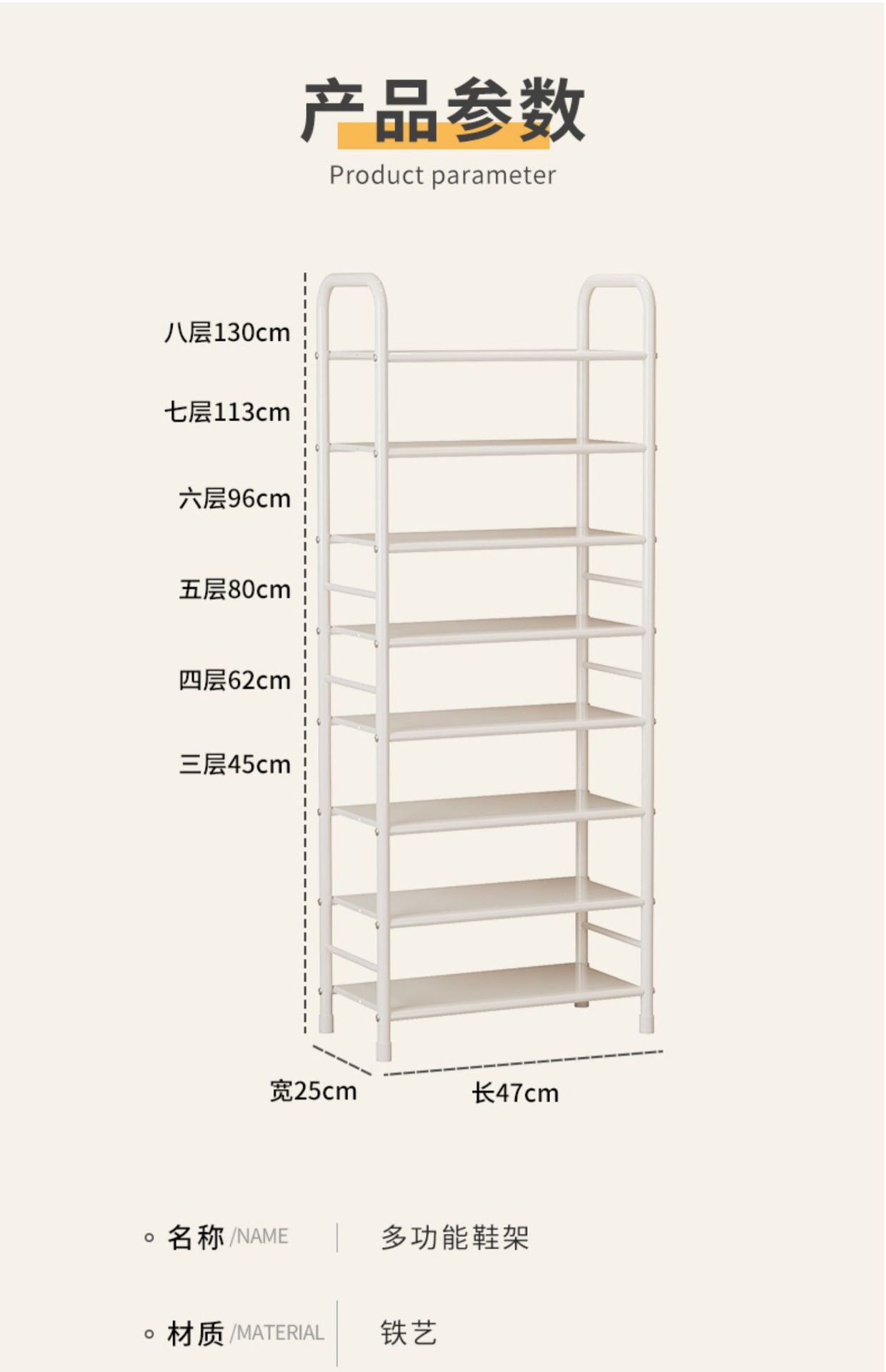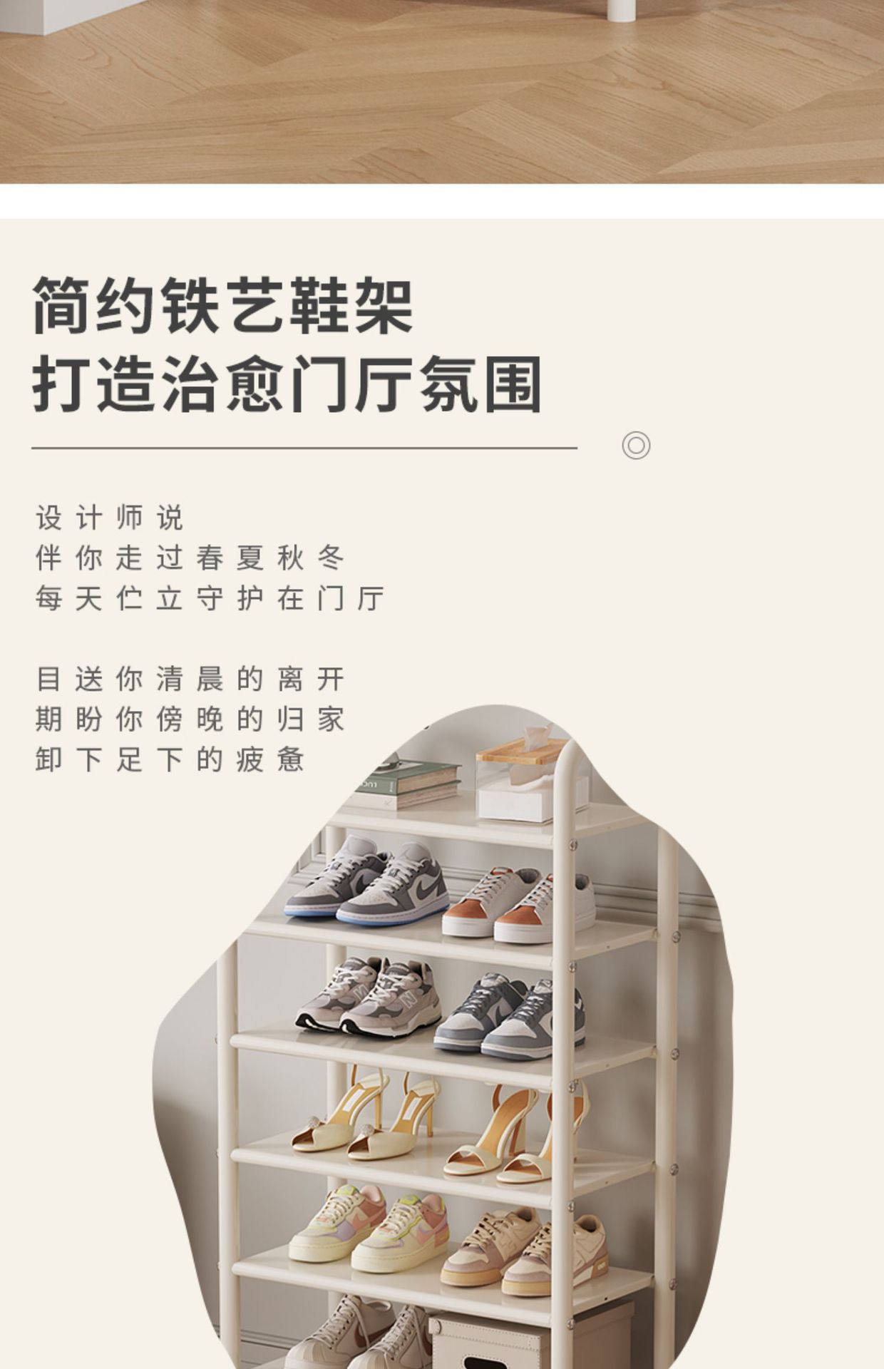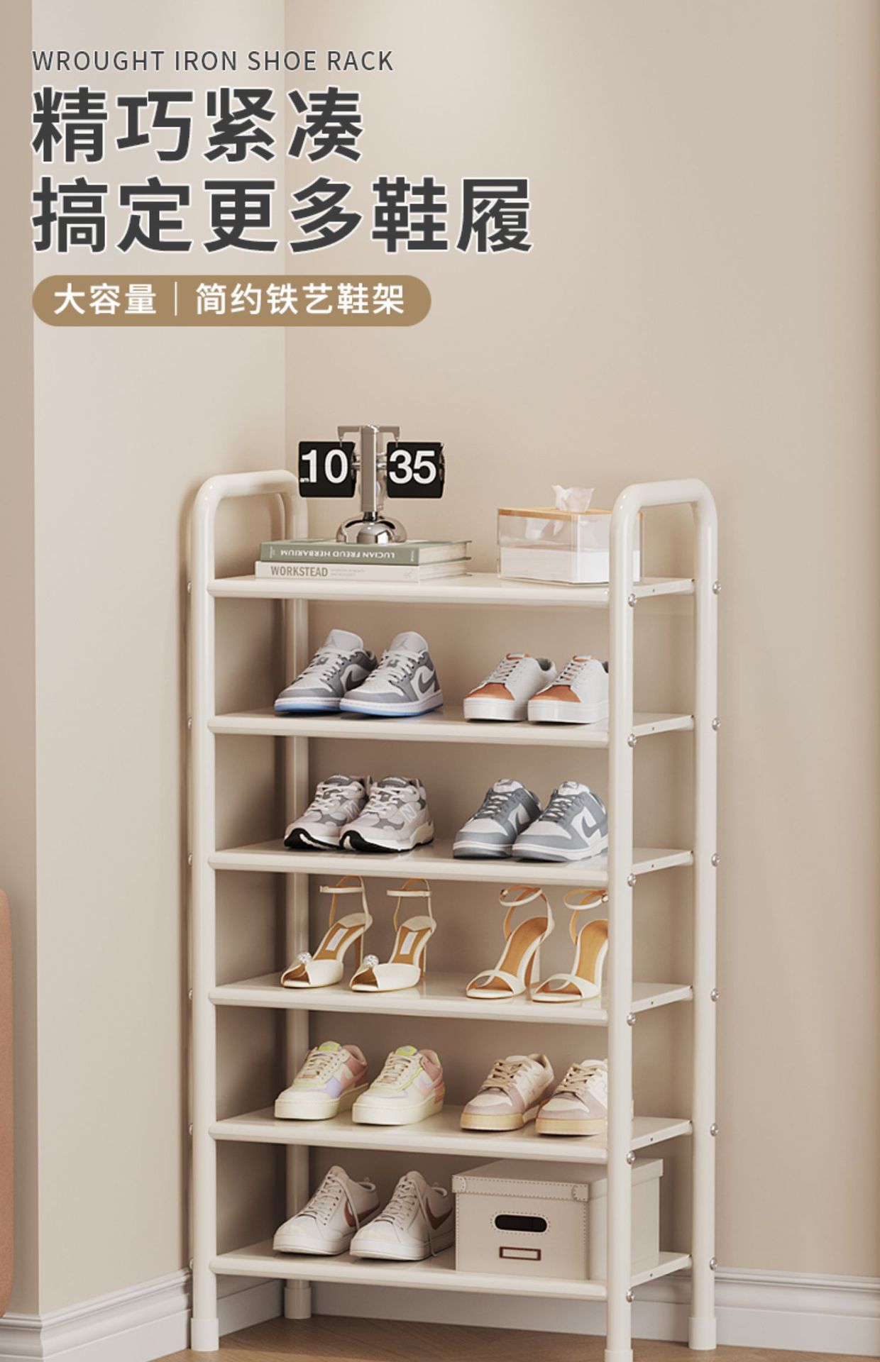 クリーム風鉄芸靴棚多層家庭用小戸型省空間鉄棚寮防かび靴収納棚