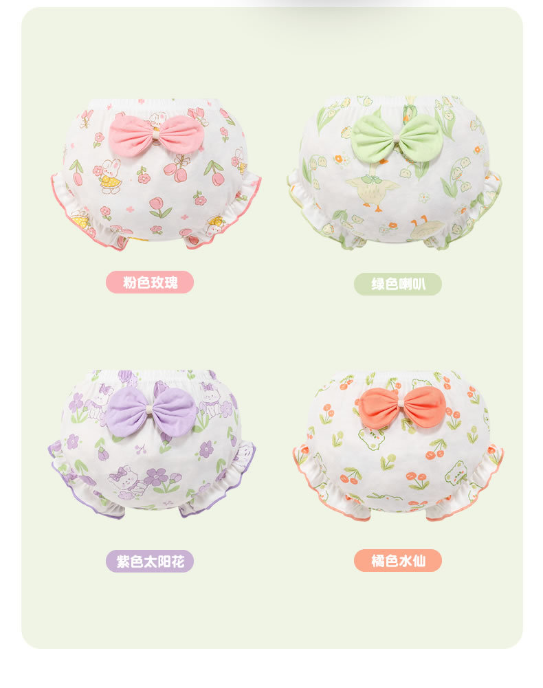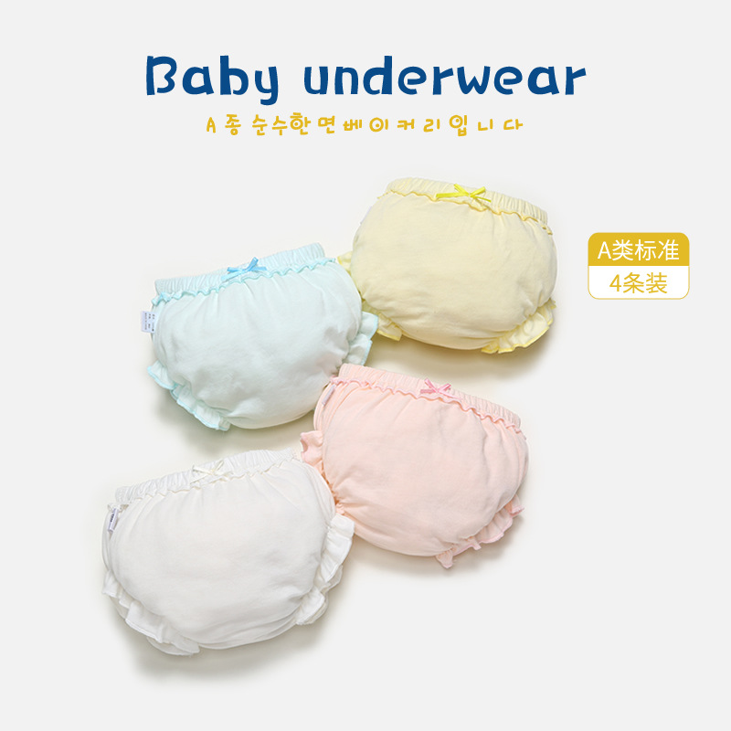 工場直販 2020年 純綿 子供用ベビー下着 パンツタイプ 小さなリボン付き 裾フリル付き 中小児向け