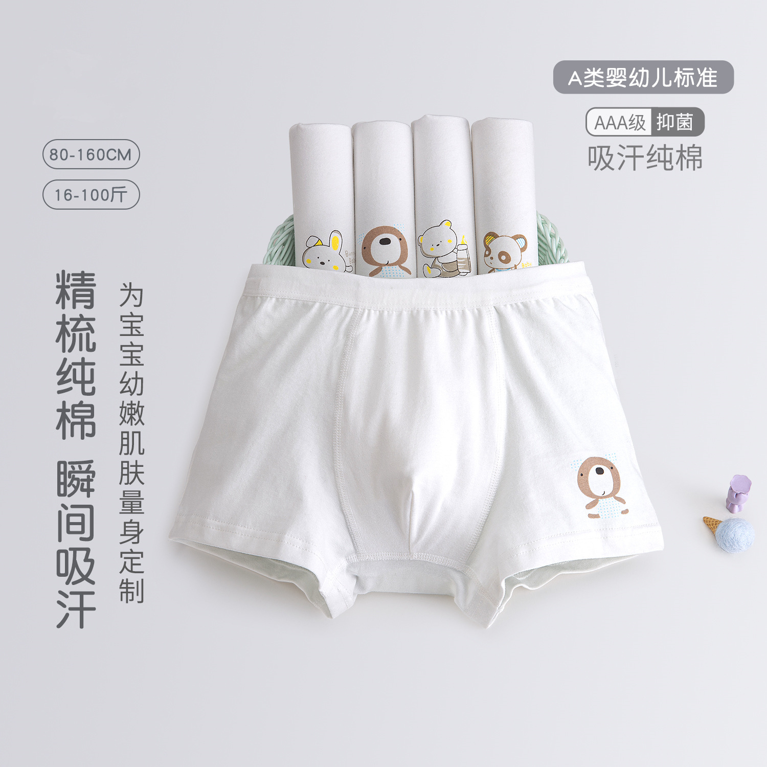 男児下着a類精櫛純綿快適通気平角半ズボン子供子供子供白下着