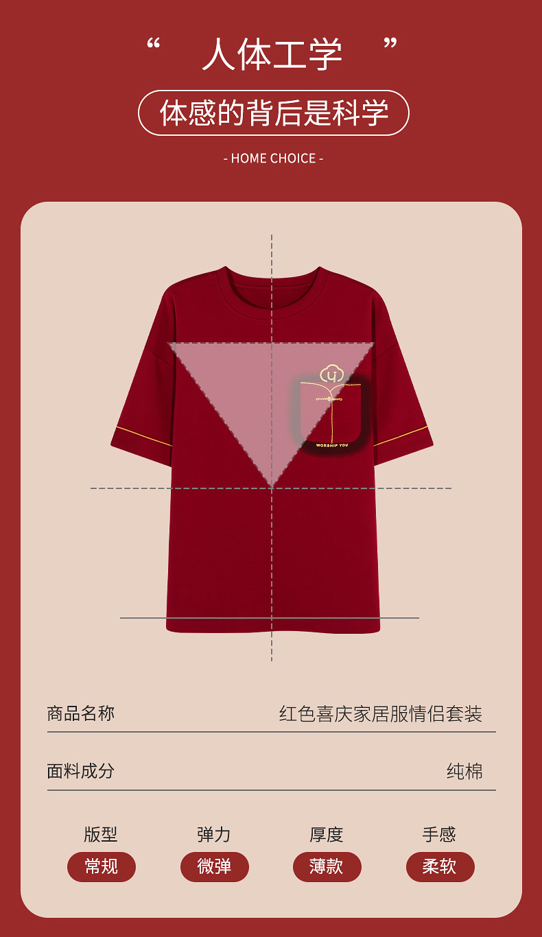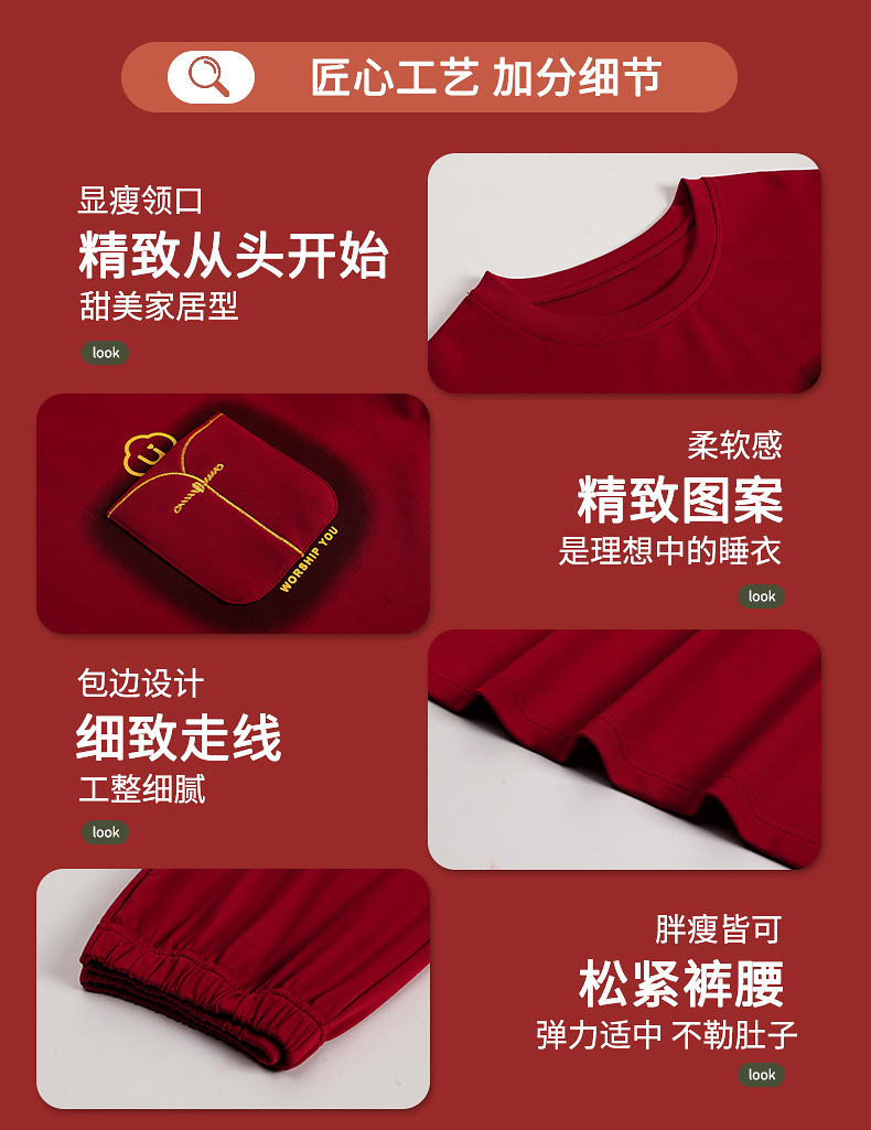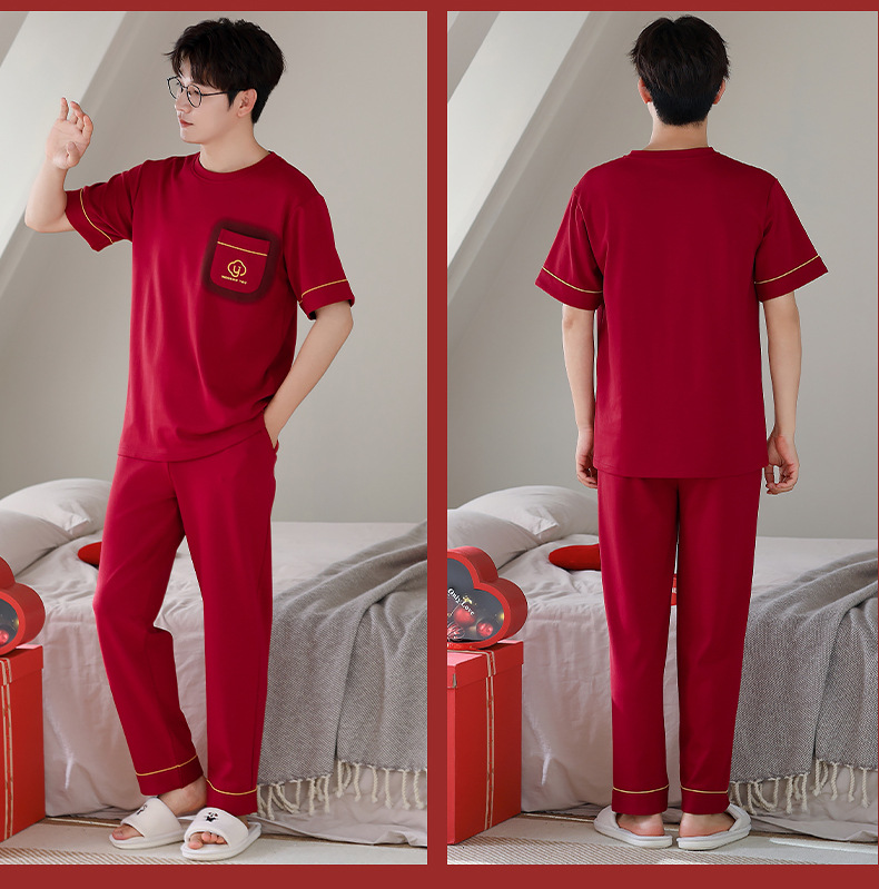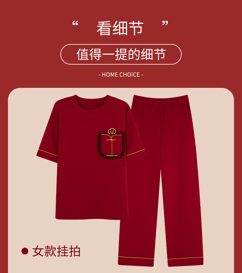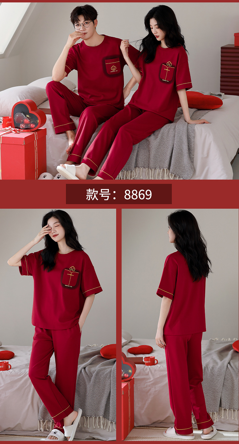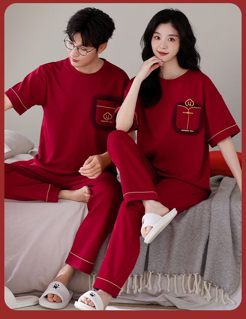 春夏結婚カップルパジャマ新婚夏純綿半袖長ズボン赤おめでたい本命年ホームウェアセット