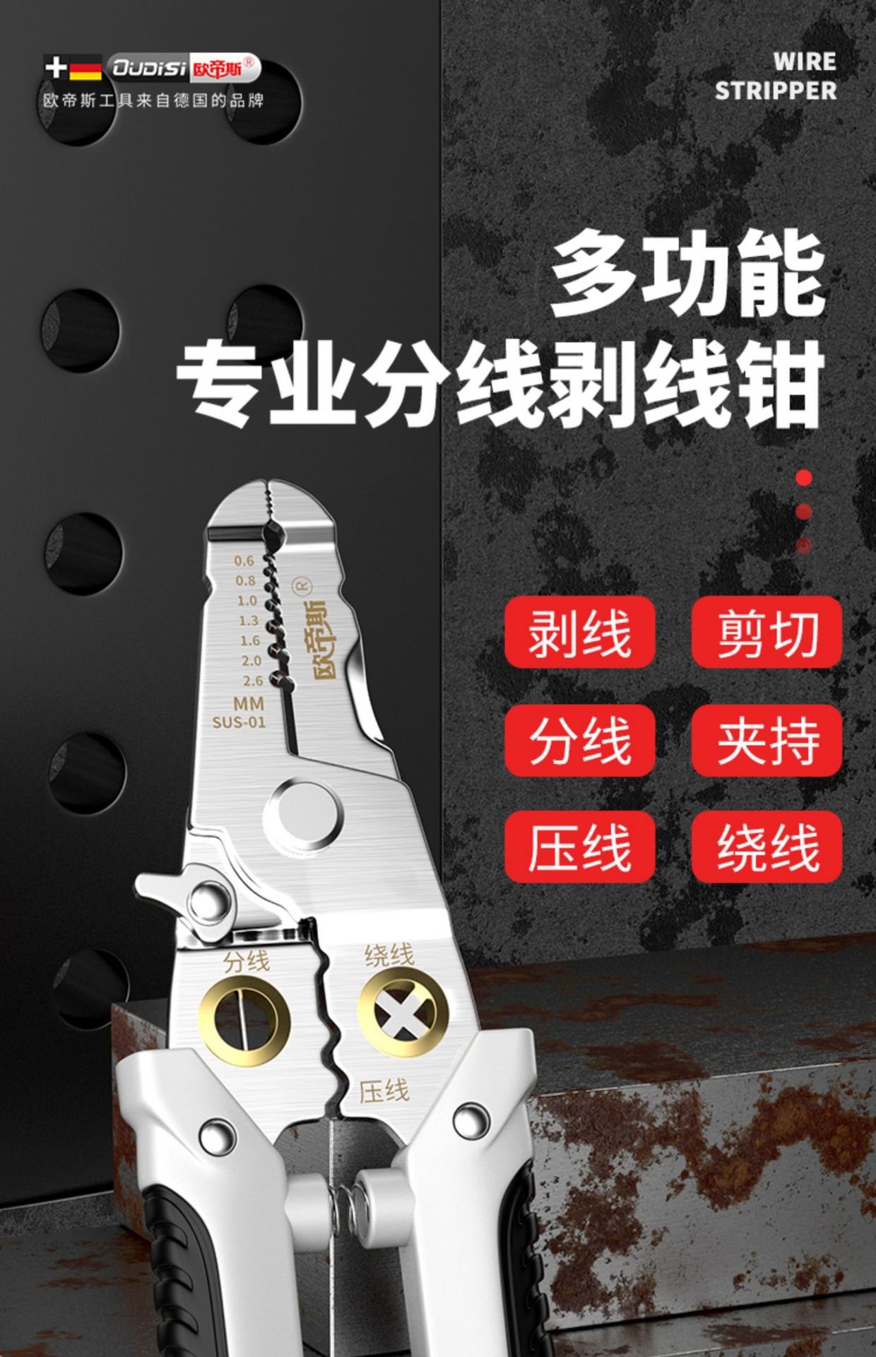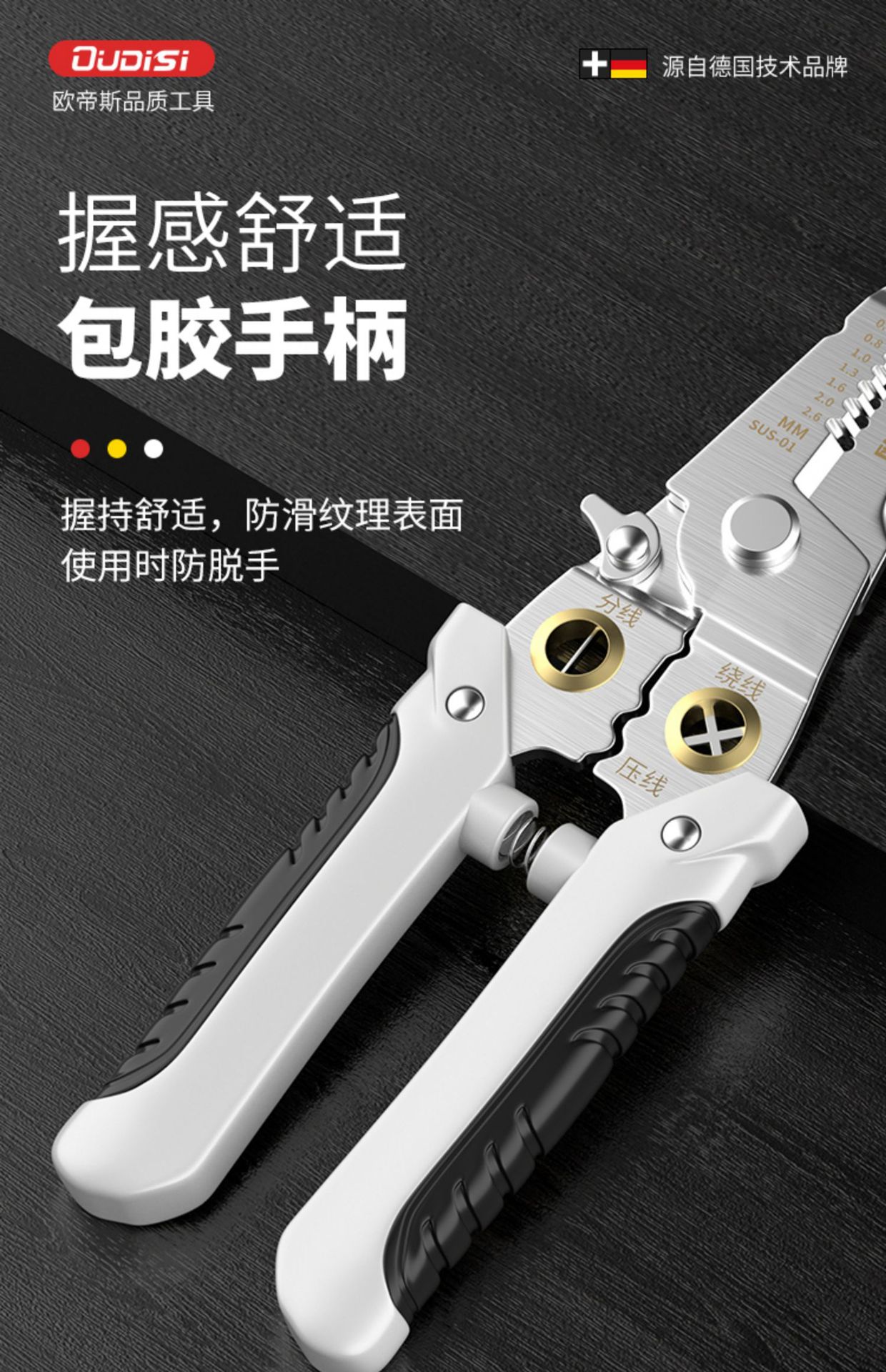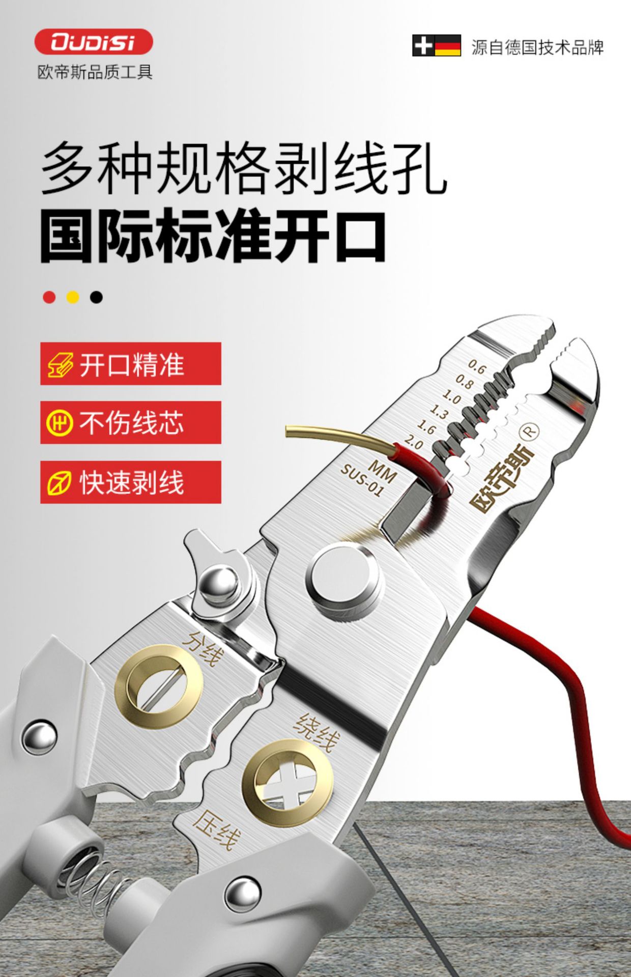 欧帝斯多機能ワイヤーストリッパー電気工専用ケーブル抜線ハサミ剥皮プライヤー圧線分線ハサミ
