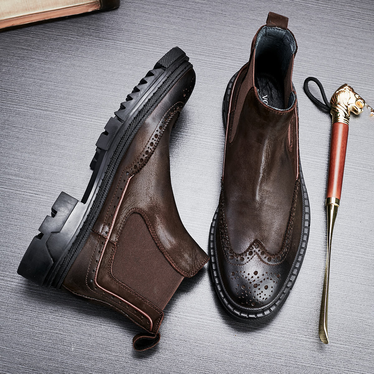 チェルシーブーツ男性牛革英倫風本革復古マーティンブーツ