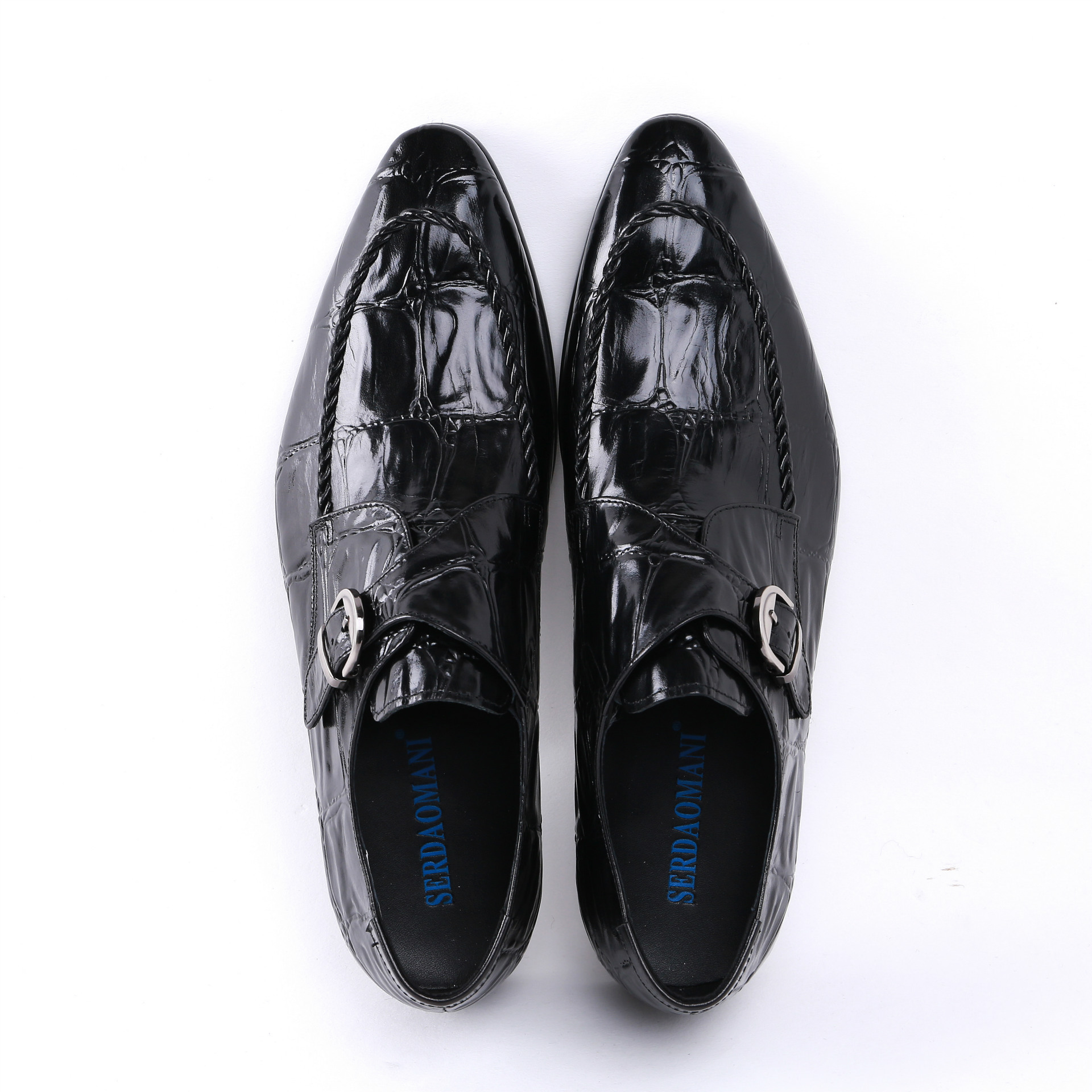 ファッションシングル靴ビジネス正装革靴バックル圧花石紋純皮男靴豪華結婚靴小サイズ37