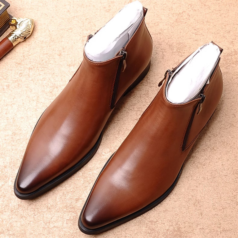 新商品の靴の先の格好の純粋な皮は牛革のショートブーツの双ファスナーの皮の靴の仕事の靴のヨーロッパ版の大きいサイズの48を作ります。