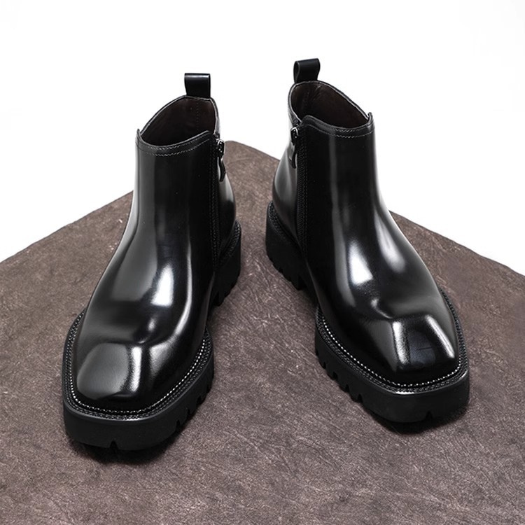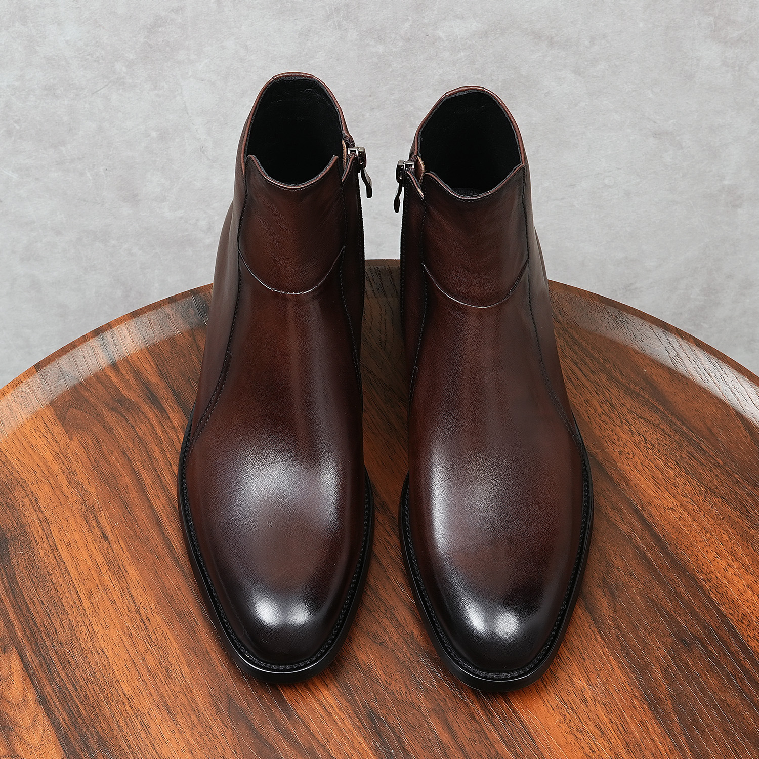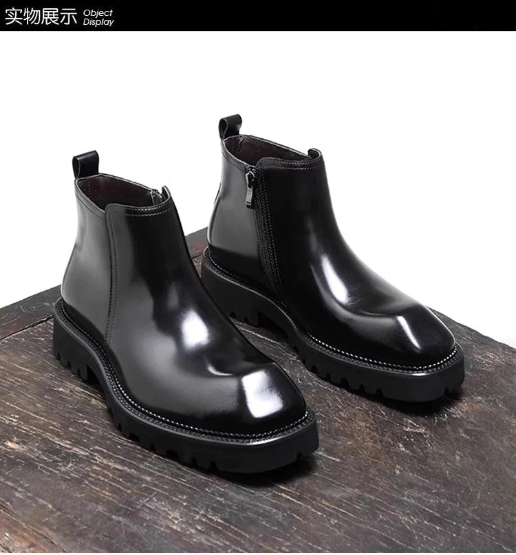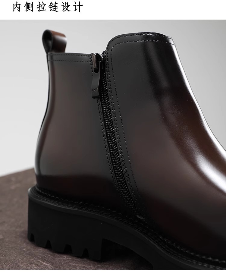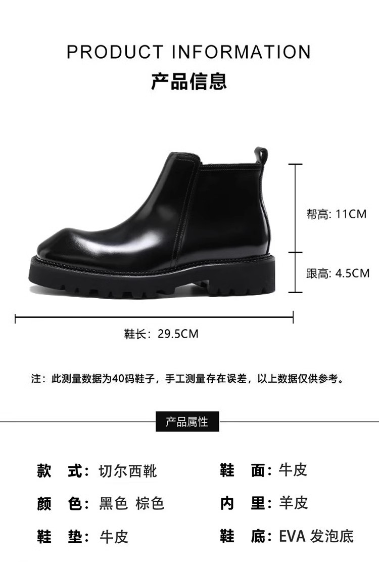 本革チェルシーブーツ男性ショートブーツ高組英倫レトロ頭層牛革男性マーティンブーツ厚い底高くなった革靴