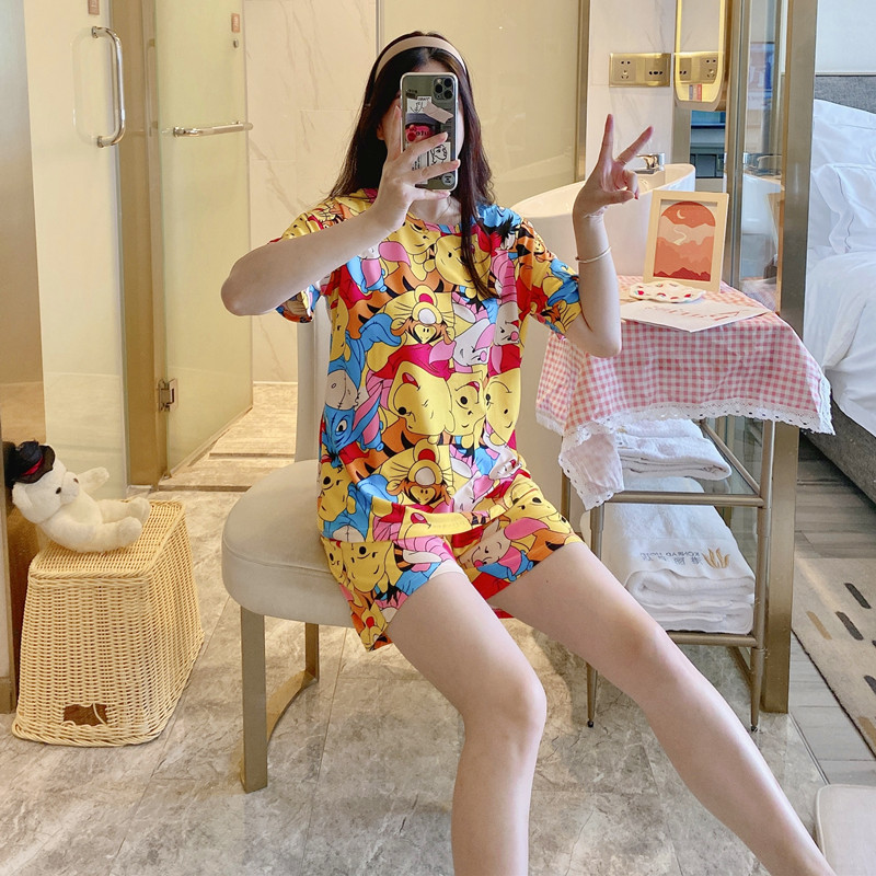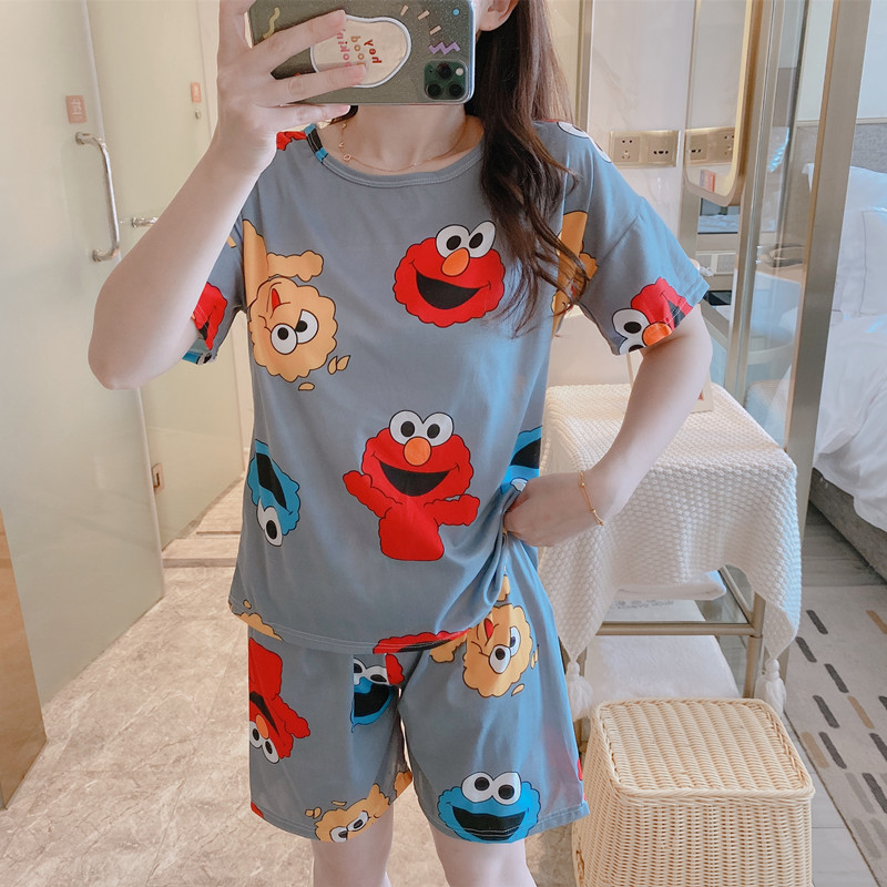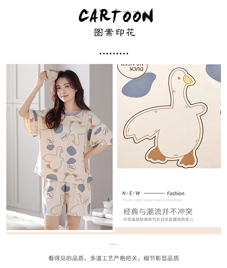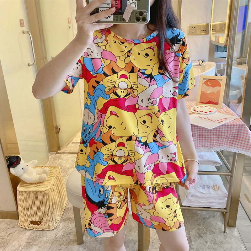 新しいパジャマの夏の女性の半袖のかわいい漫画ネットの赤いパジャマの女性の夏のゆったりした女性の春秋のタイプの家の服