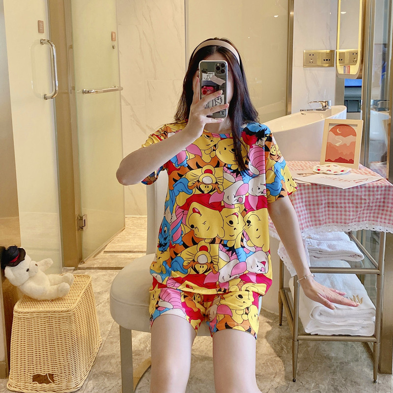 【工場店】パジャマ女性夏三点セット半袖ズボン漫画ゆるいパジャマ家服