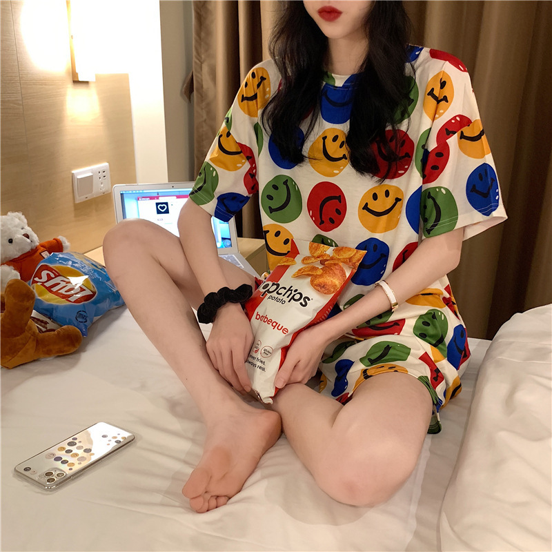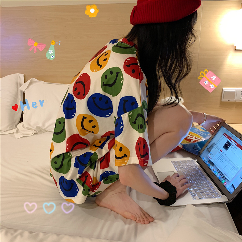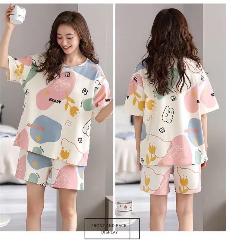 パジャマメーカー直販越境夏韓国版かわいい少女半袖半ズボンパジャマ女性夏ルームウェアセット