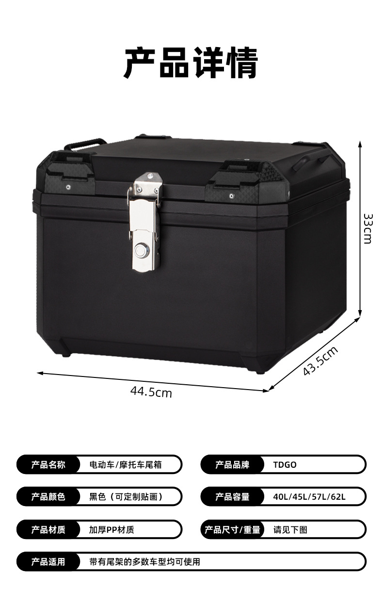 80L摩托车尾箱大容量电动车后备箱工具箱踏板赛鸽黑骑士外卖箱