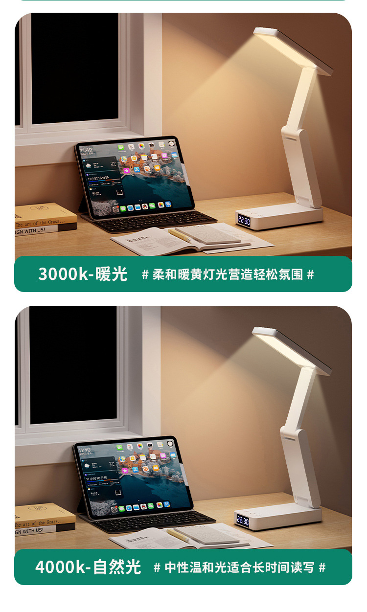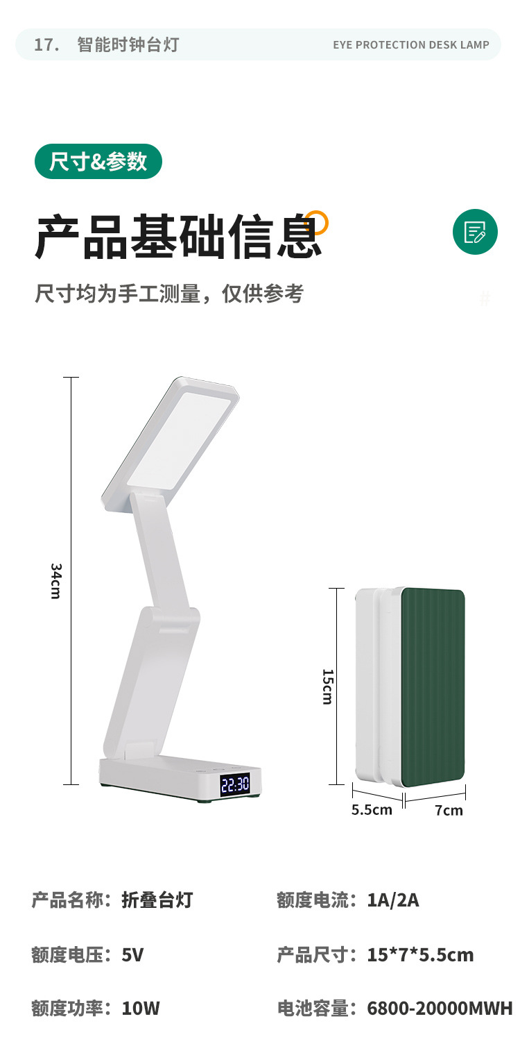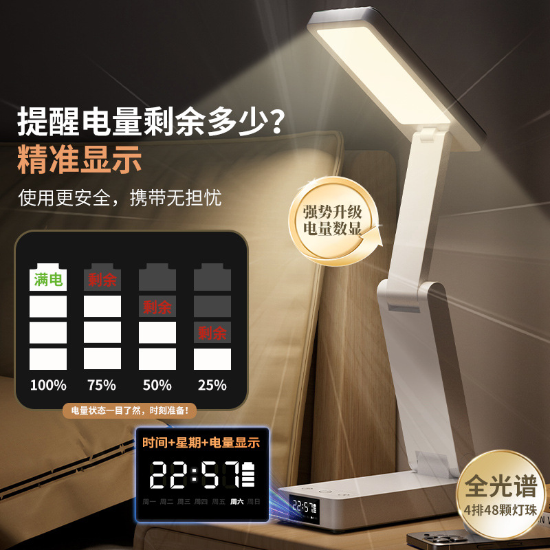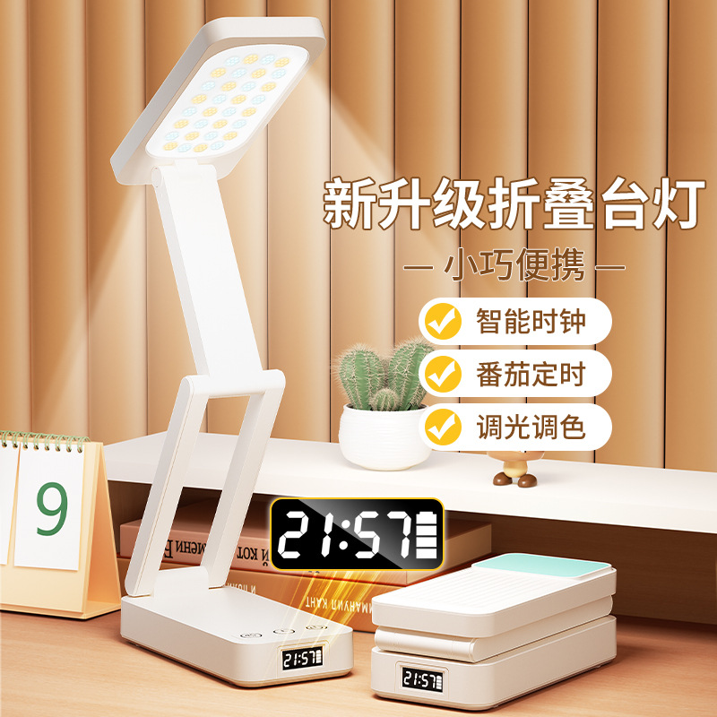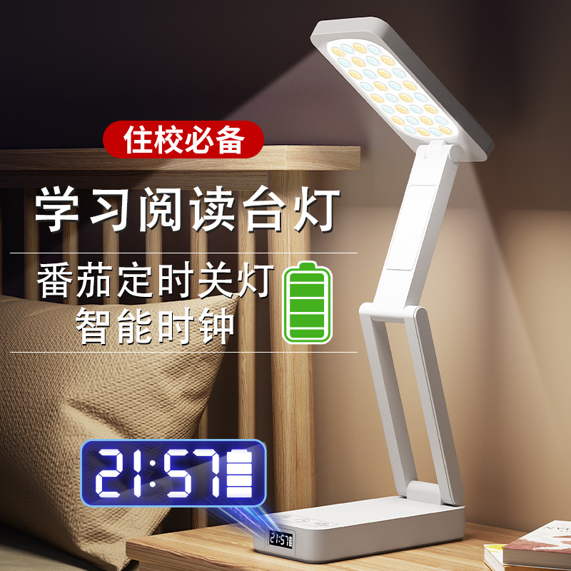 折りたたみ LED 学習ランプ寮オフィスライティング学生寝室ベッドサイドランプ読書時計電源銀行テーブルランプ