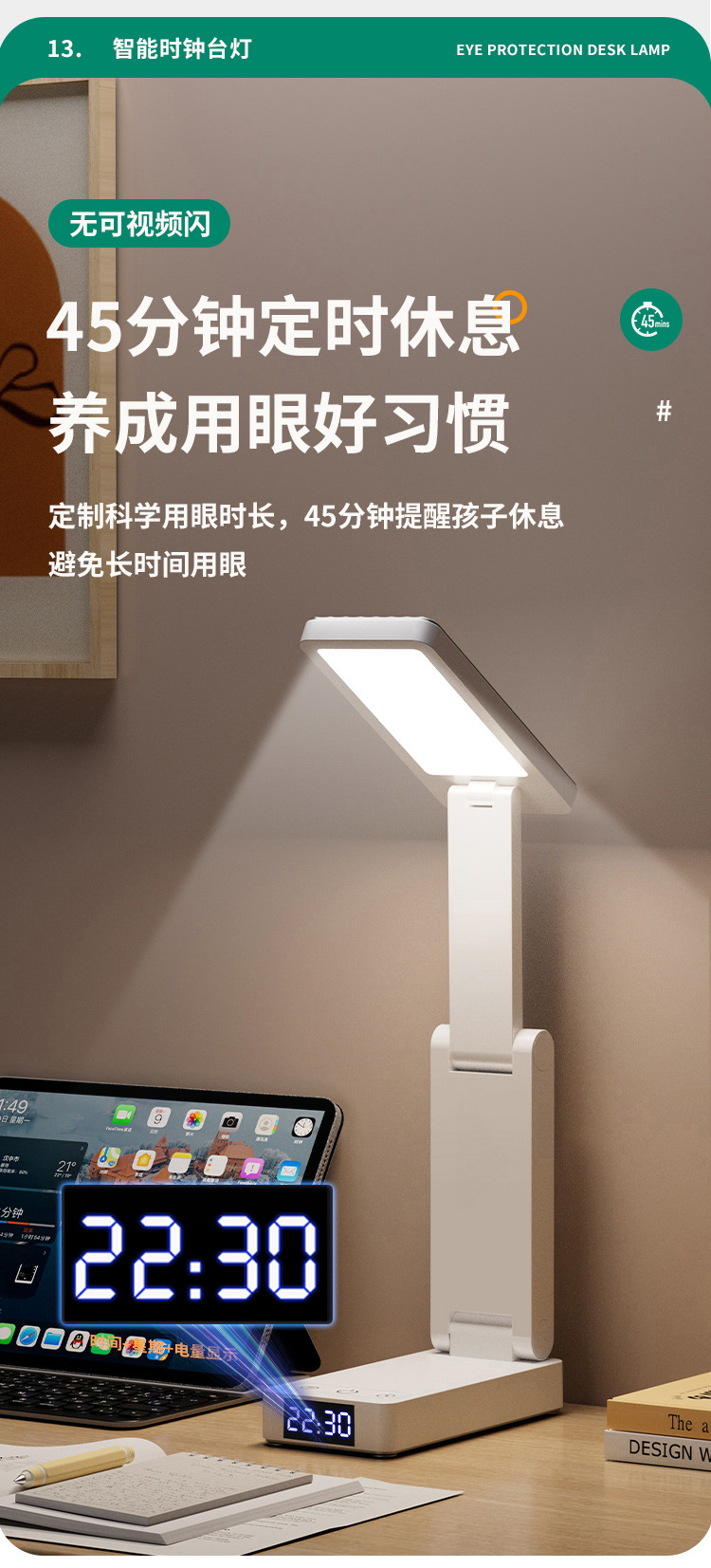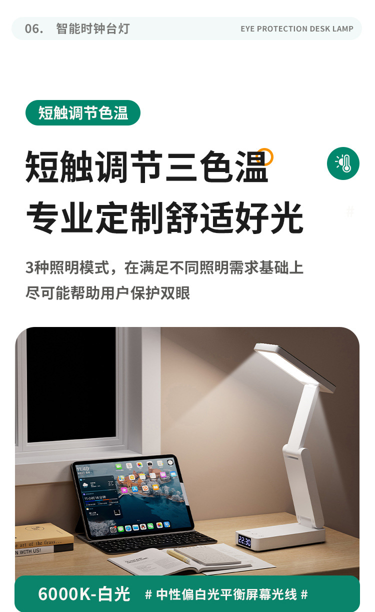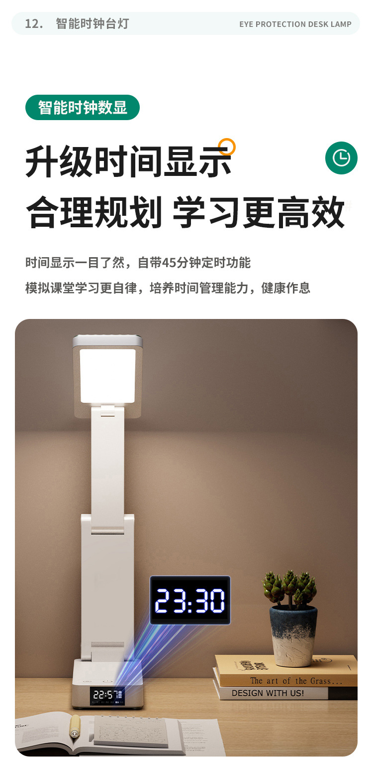 折りたたみ LED 学習ランプ寮オフィスライティング学生寝室ベッドサイドランプ読書時計電源銀行テーブルランプ