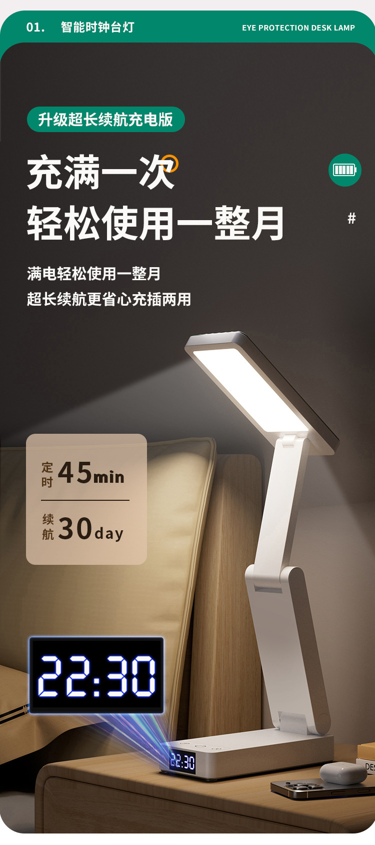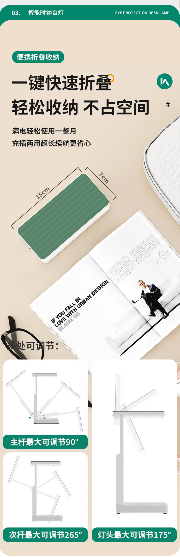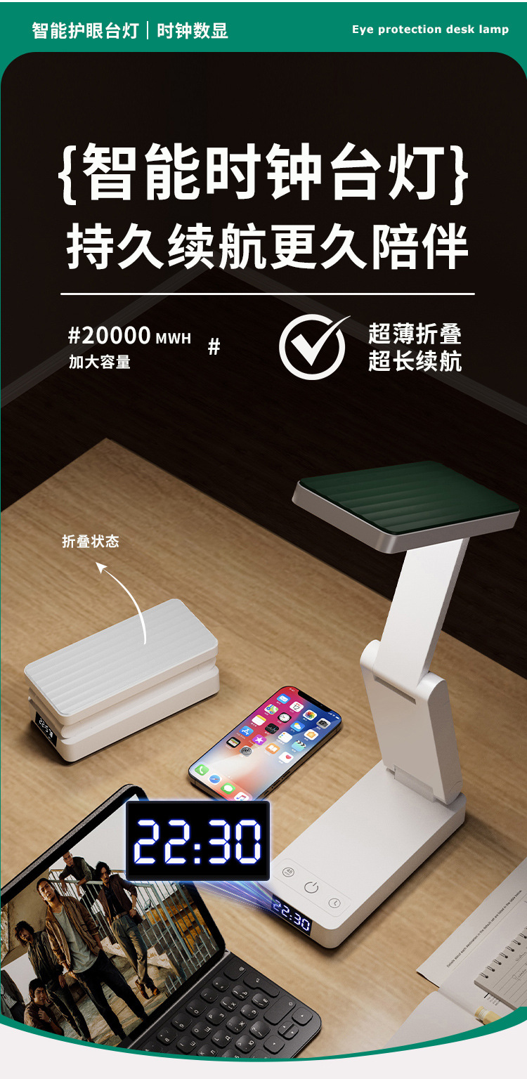 折叠台灯可充电式护眼灯学习用学生宿舍叠便携大容量超长续航台灯