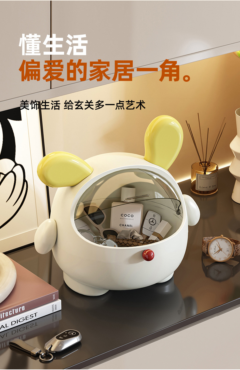 玄関収納ボックス、ドアキー装飾品収納ラック、フリップトップ透明デスクトップカウンタートップ雑貨収納