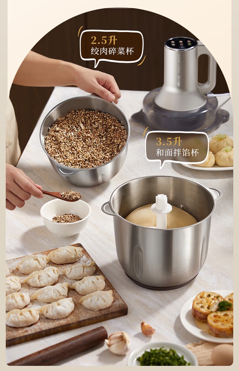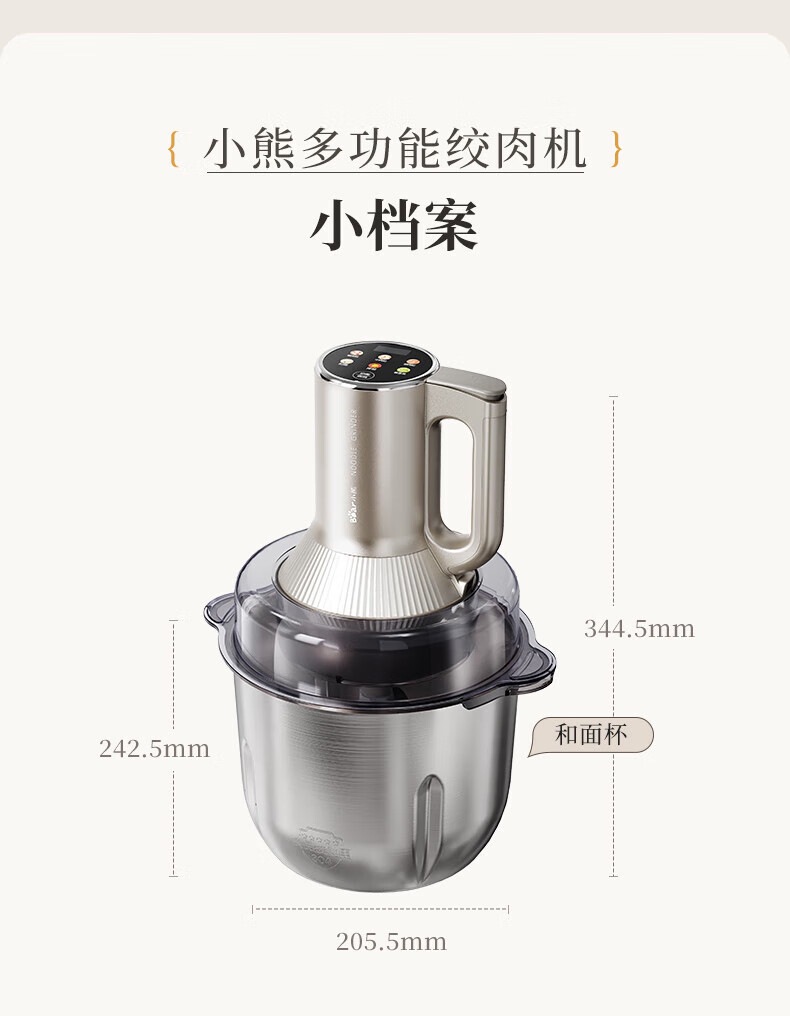 小熊绞肉机家用 和面机多功能揉面搅面绞馅机肉馅碎肉机 双杯面食