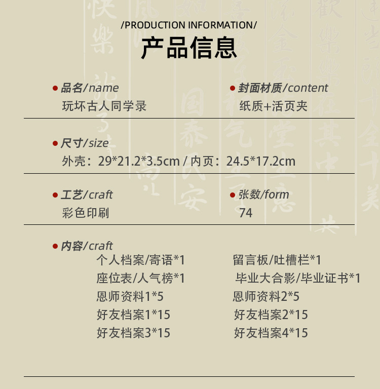 备注:批发同学录均不含卡册内页,如有需要可另外加购