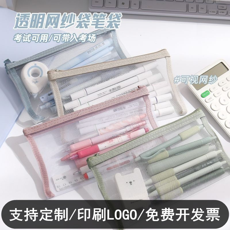 透明網紗筆袋大容量ファスナー収納袋学生試験専用携帯鉛筆袋文房具袋卸売り