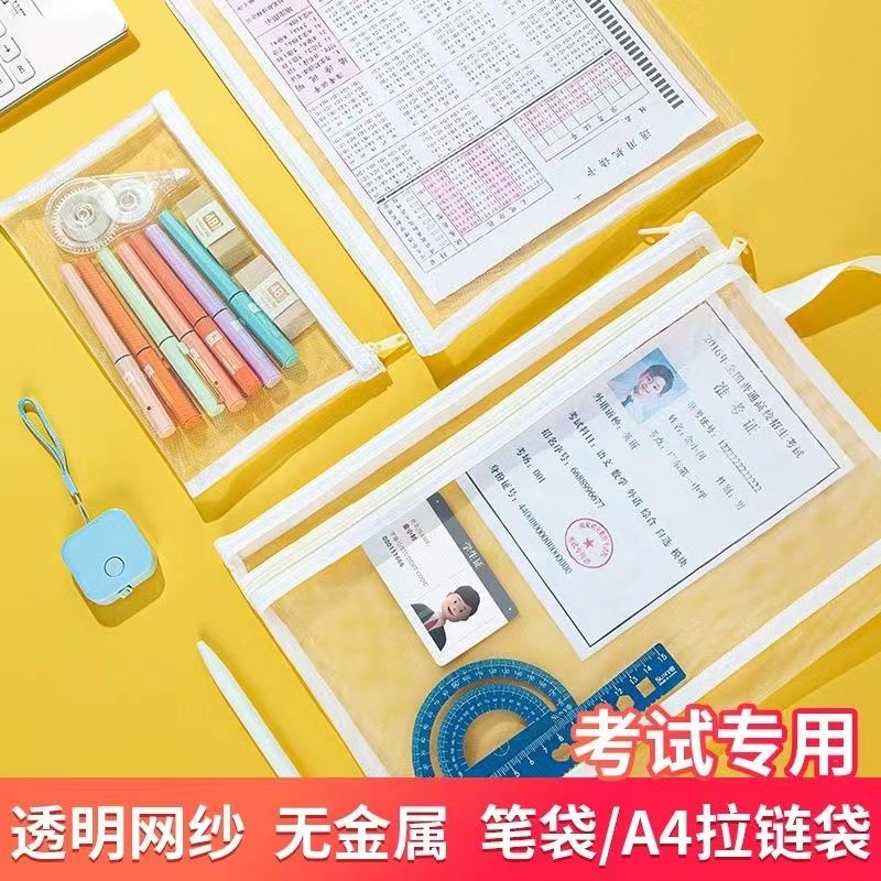 A4考试网纱透明文件学习收纳双层学生科目分类中高考A6笔袋大容量