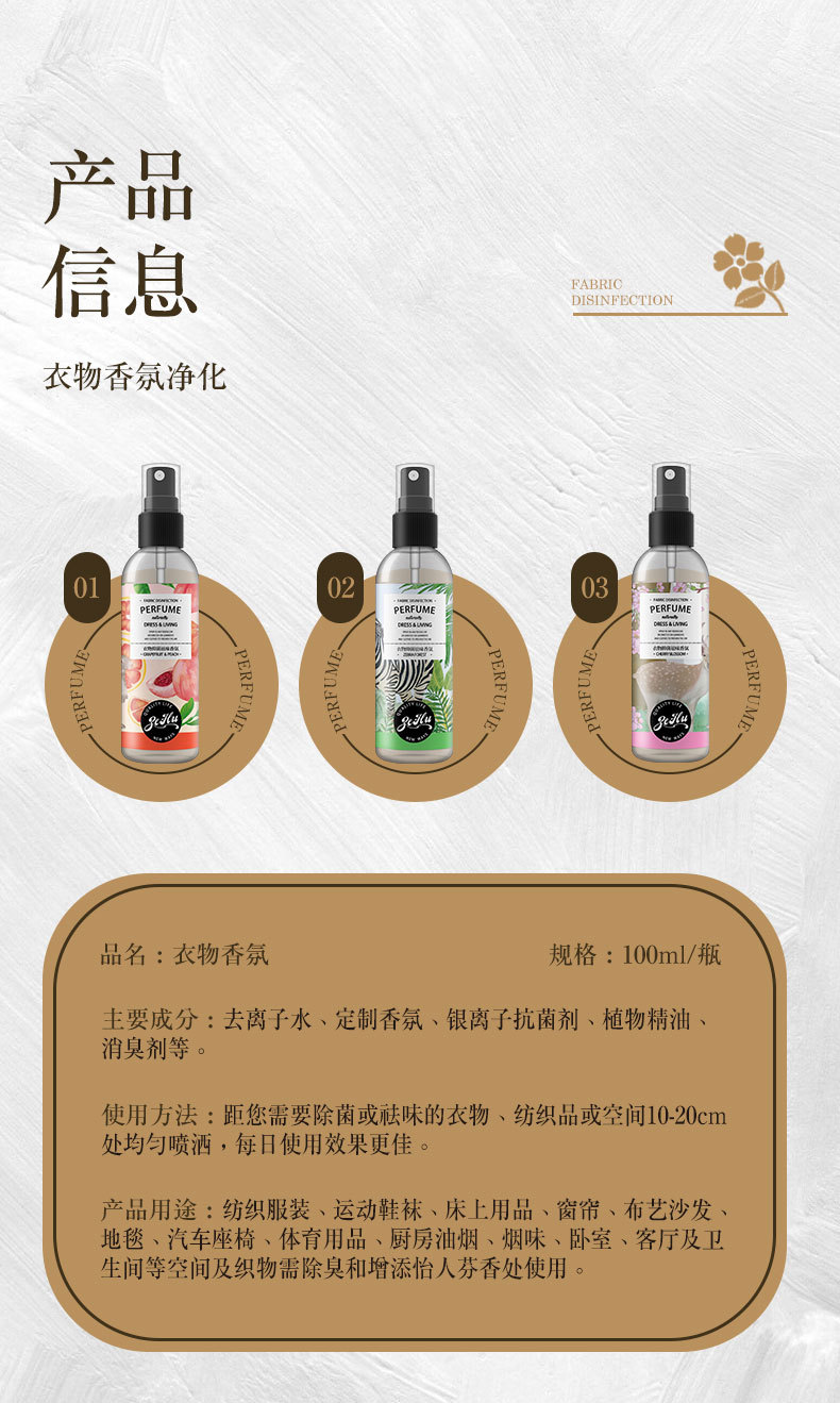 保護服アロマスプレー大物男女衣類香水留香消臭消臭100ml衣類アロマスプレー