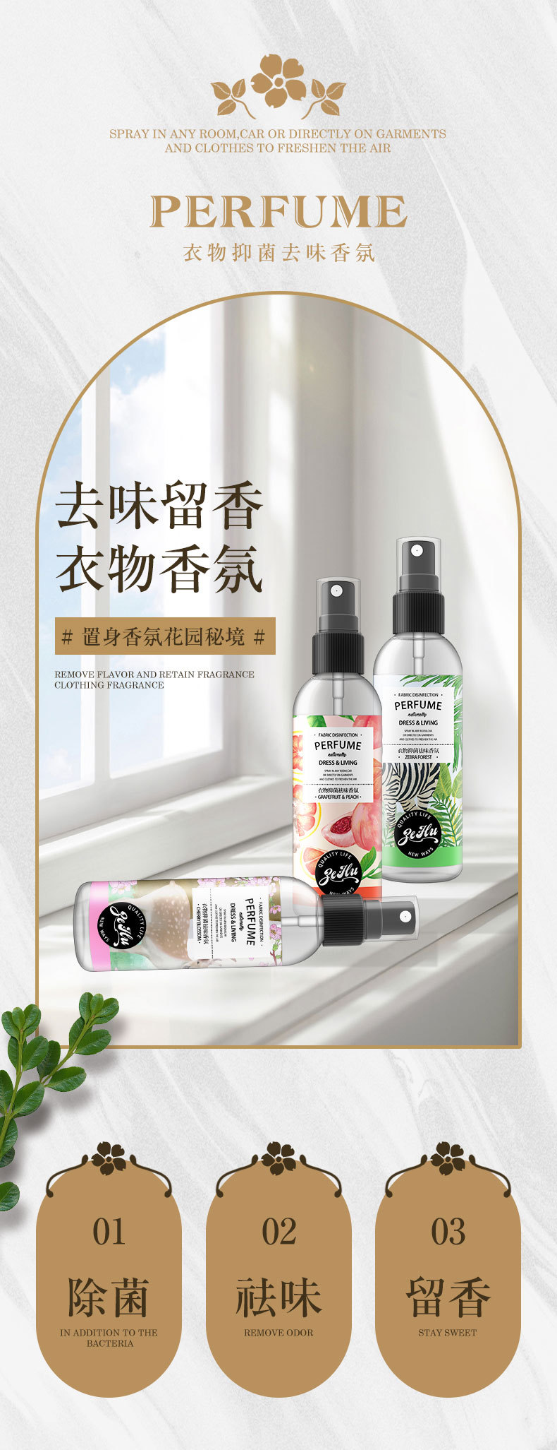 香薰衣物除味香氛喷雾持久留香家用衣柜空气清新剂除异味除臭神器