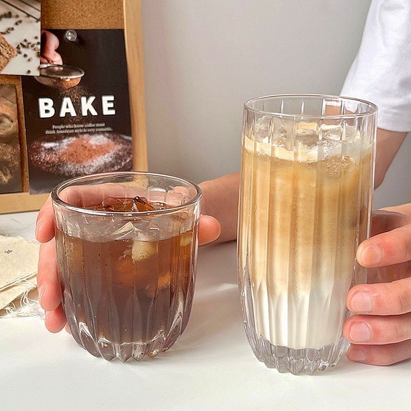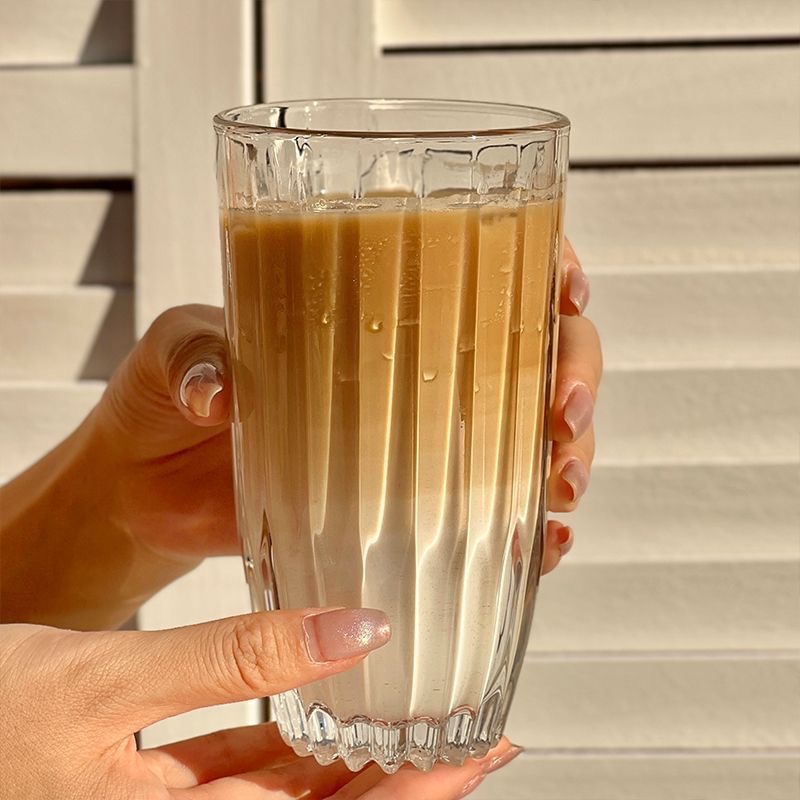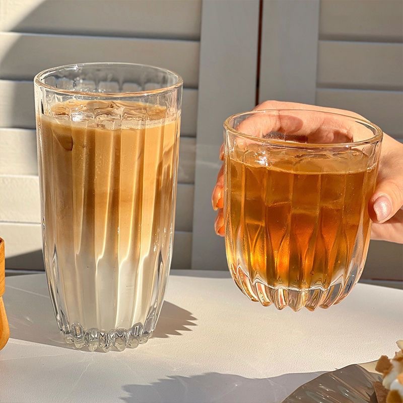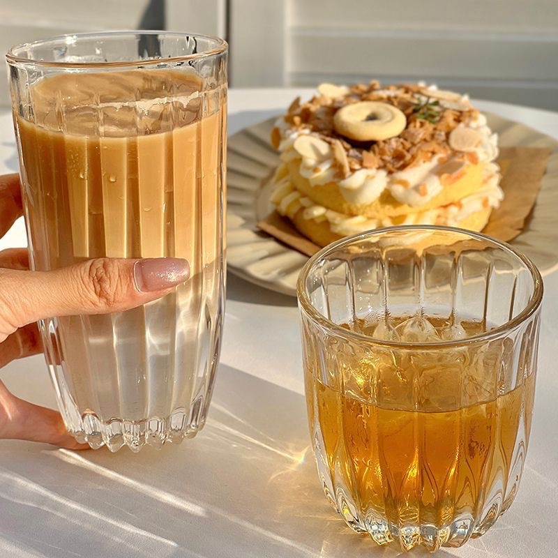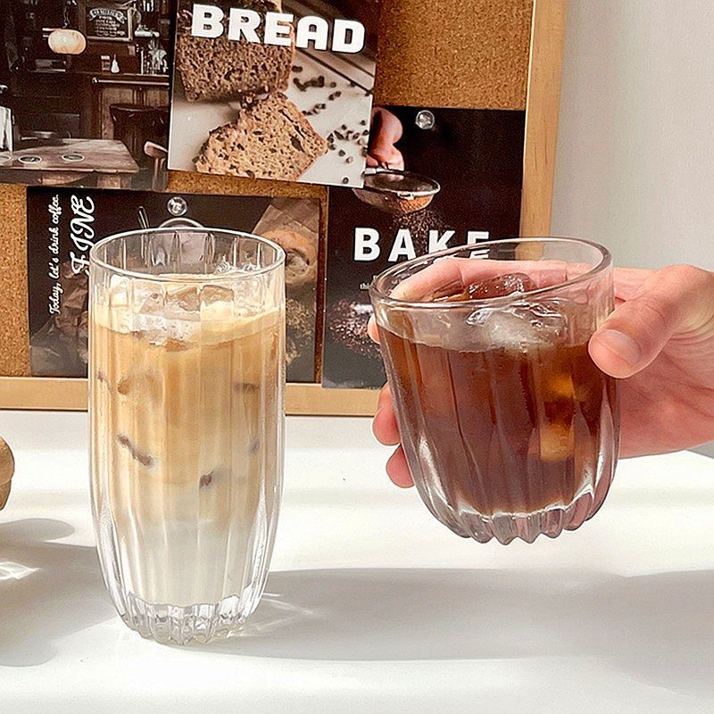 Ins風ガラスコーヒーカップレトロ縦縞家庭用飲水カップ高颜値飲料アイスアメリカンラテカップ