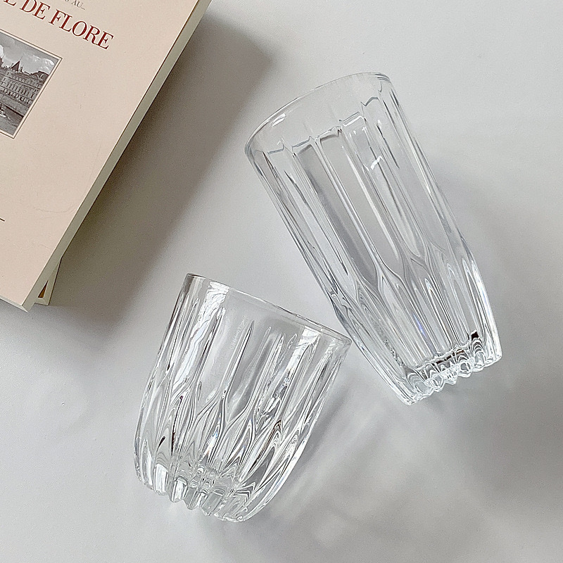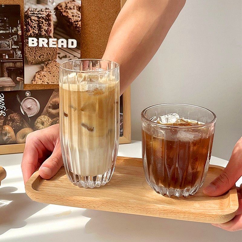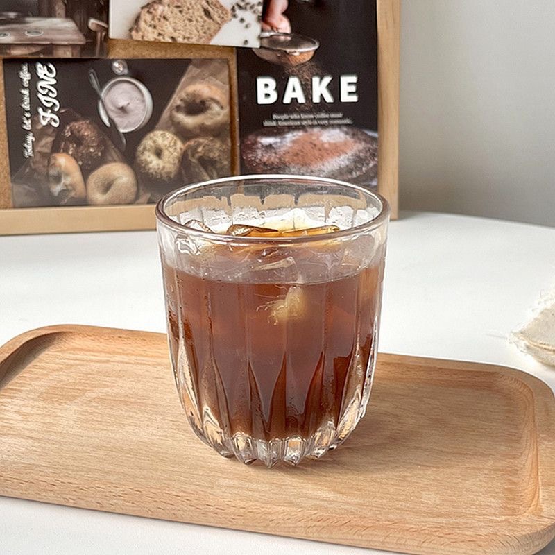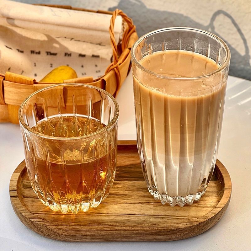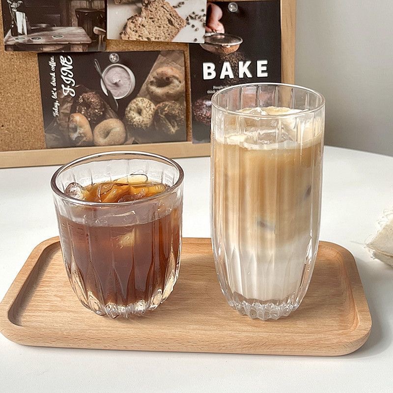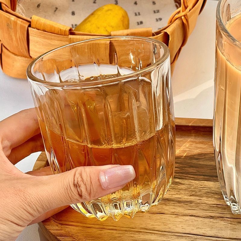 Ins風ガラスコーヒーカップレトロ縦縞家庭用飲水カップ高颜値飲料アイスアメリカンラテカップ