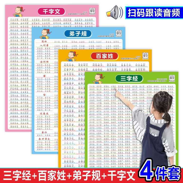 三字経千字文百家苗字弟子規古詩詞セット学生小学校啓蒙知識点掛け図壁貼り
