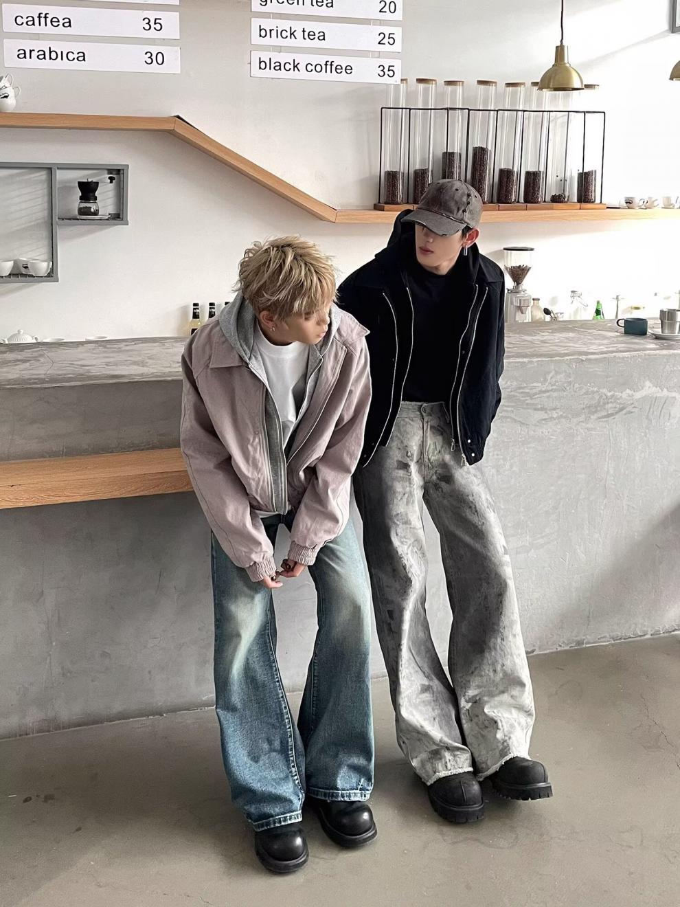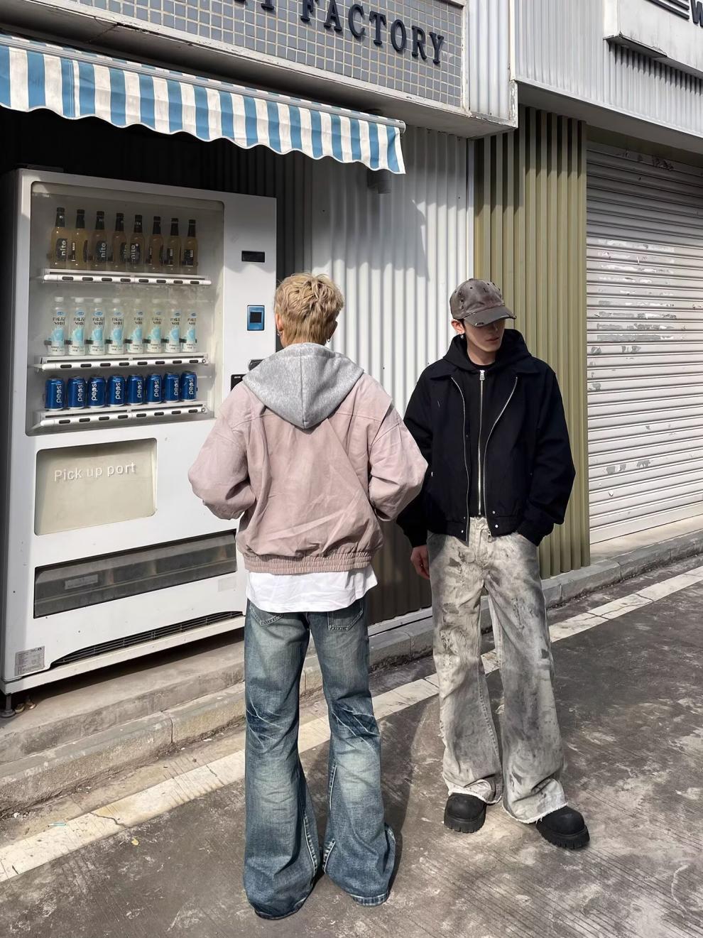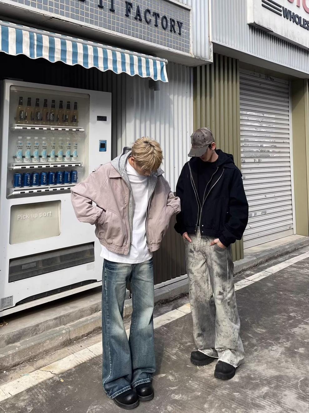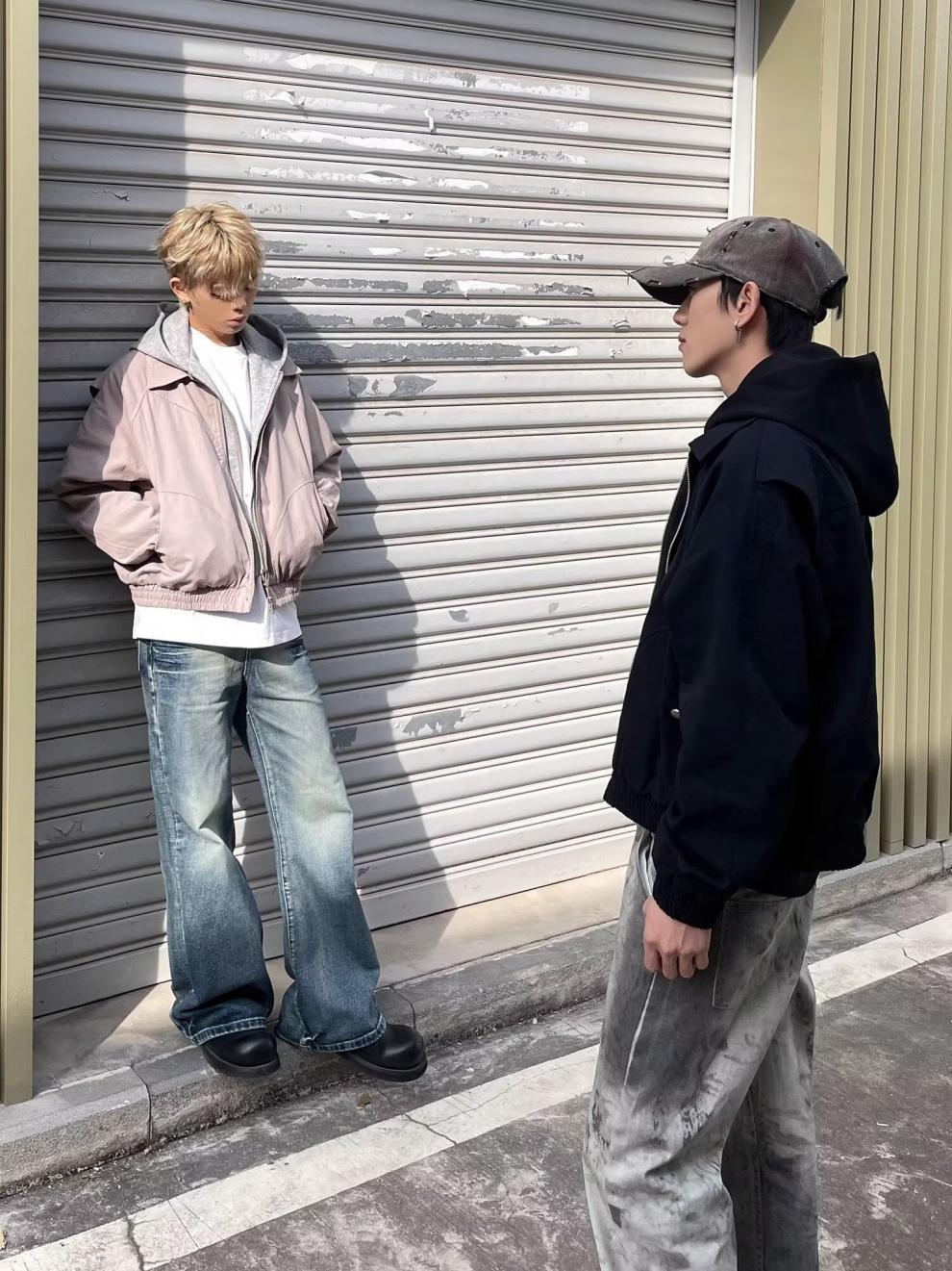 春秋のアメリカのレトロな青少年の郭の形のジャケットの男女のごろつきのかっこいい偽の2つのデザイン感は帽子のコートの潮に関連します。