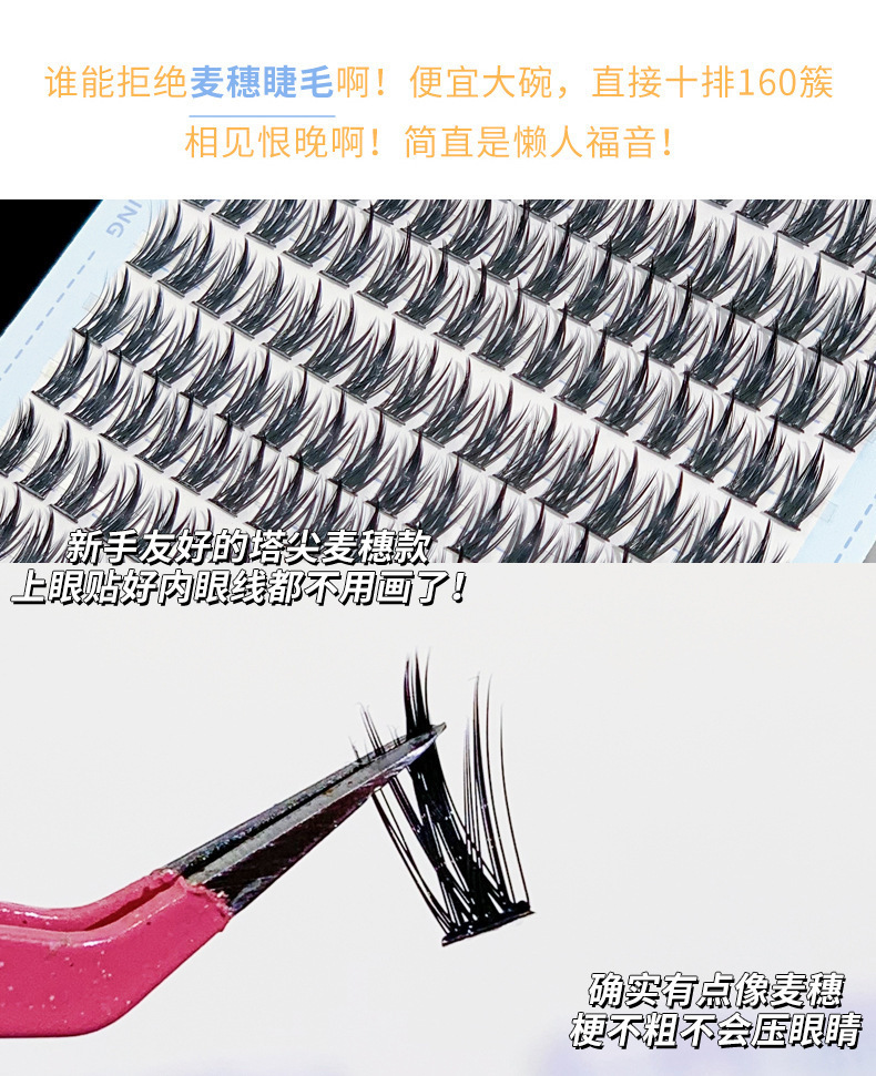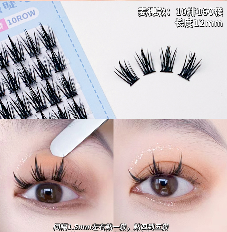 Xixi塔先麦穂偽まつげ10列大容量自然シミュレーション濃密超細梗分段式まつげ