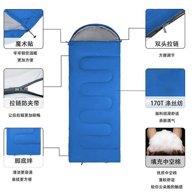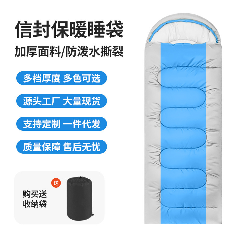 跨境睡袋户外露营办公室午休便携信封保暖抗寒野营睡袋加厚防波水
