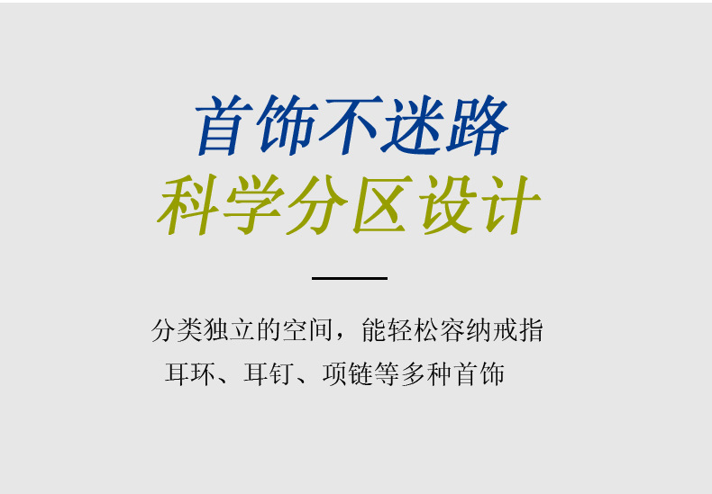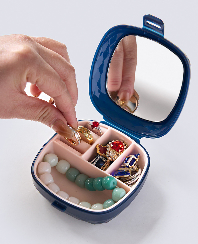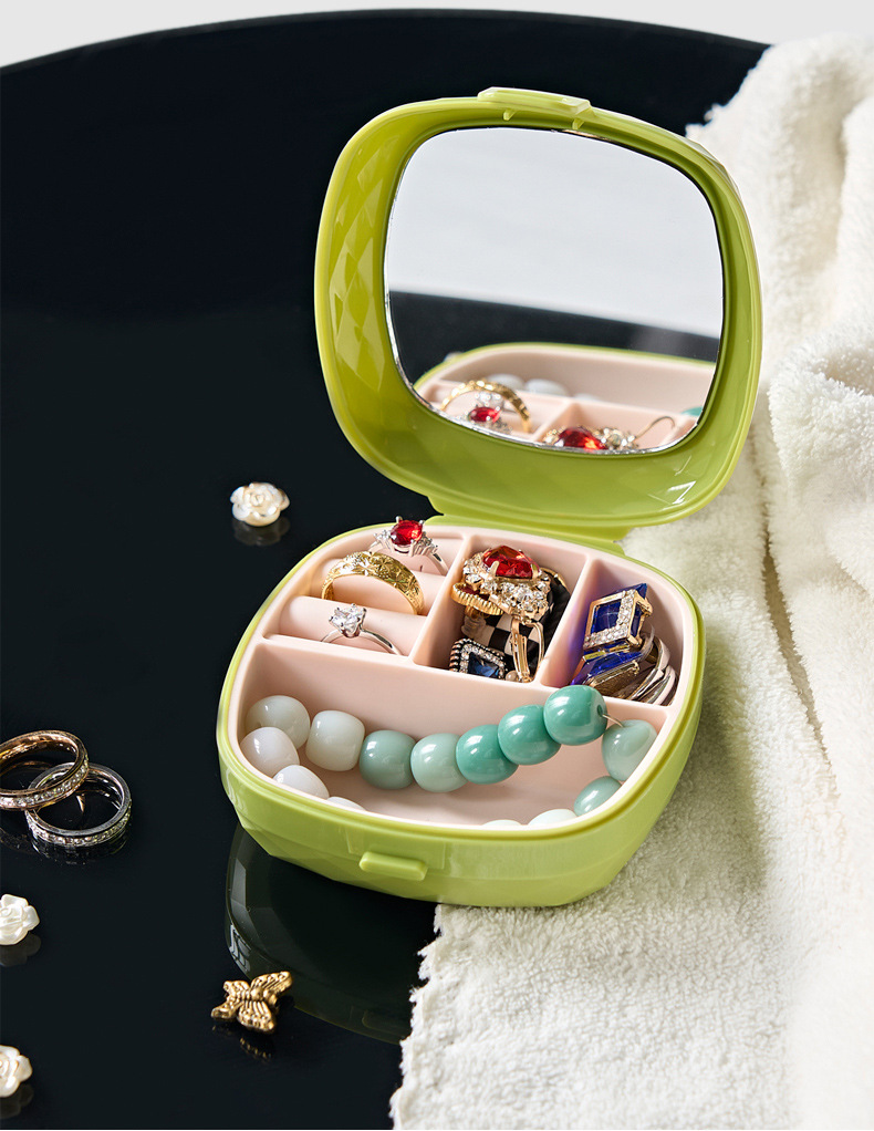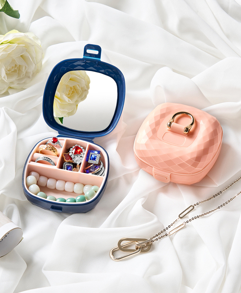 新款简约带化妆镜旅行便携首饰盒珠宝戒指项链耳环耳钉多用收纳盒