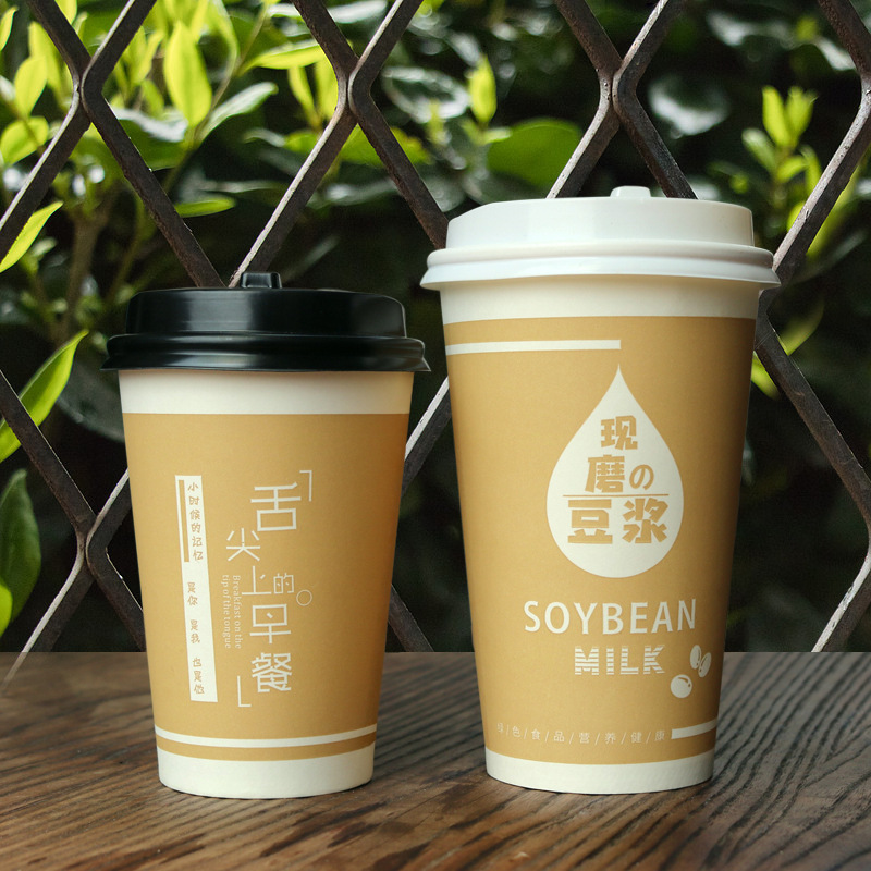 朝食は今豆乳カップを研いでいます。使い捨ての紙コップは蓋を持っています。