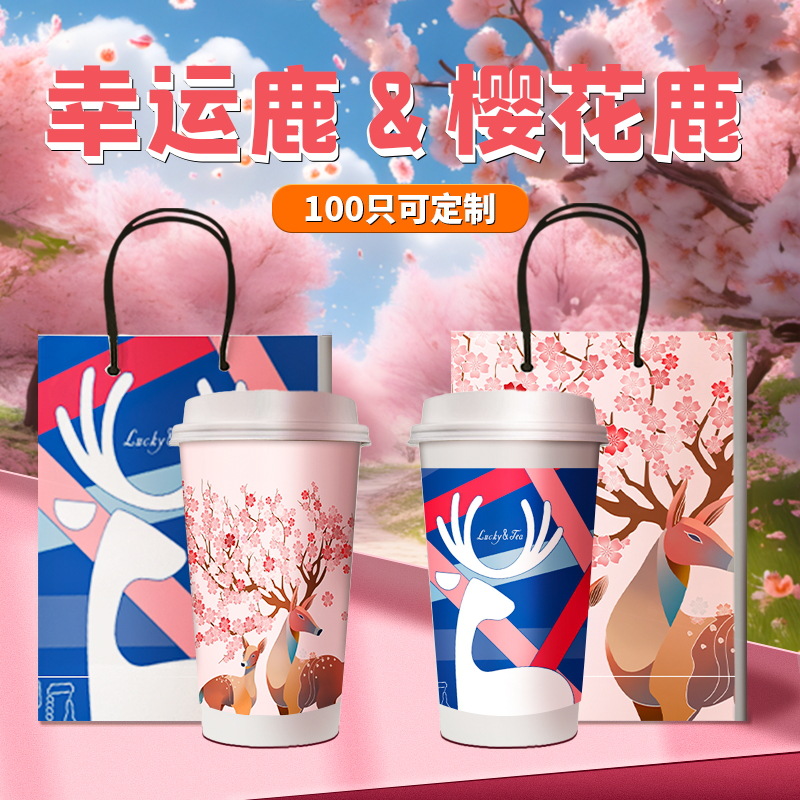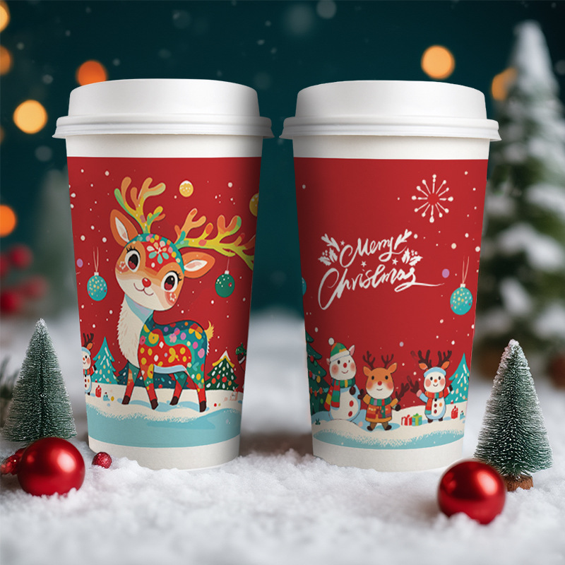 圣诞纸杯一次性奶茶杯带盖节日喜庆氛围热饮高档精致加厚咖啡杯