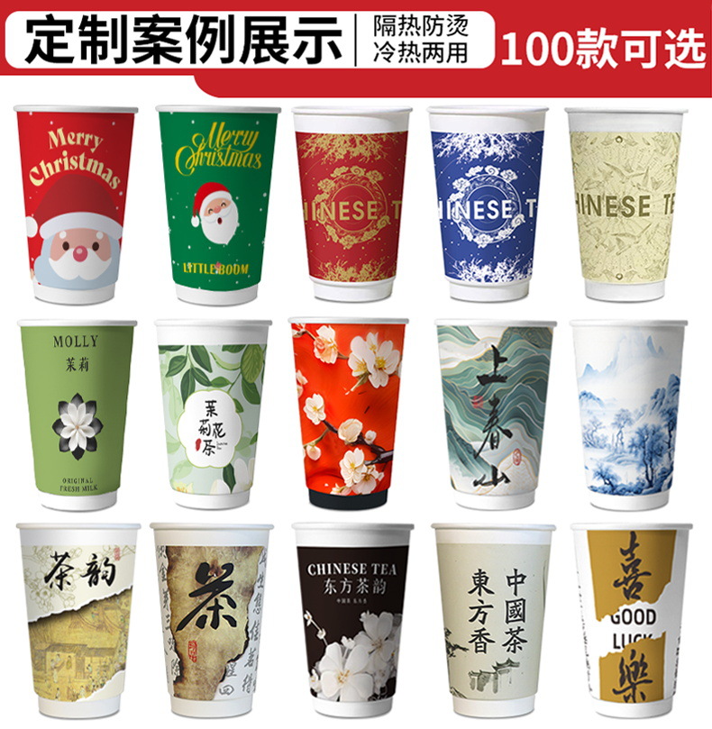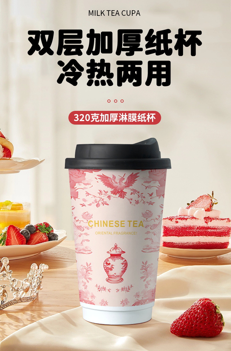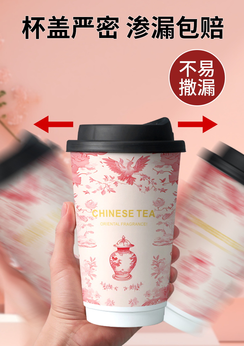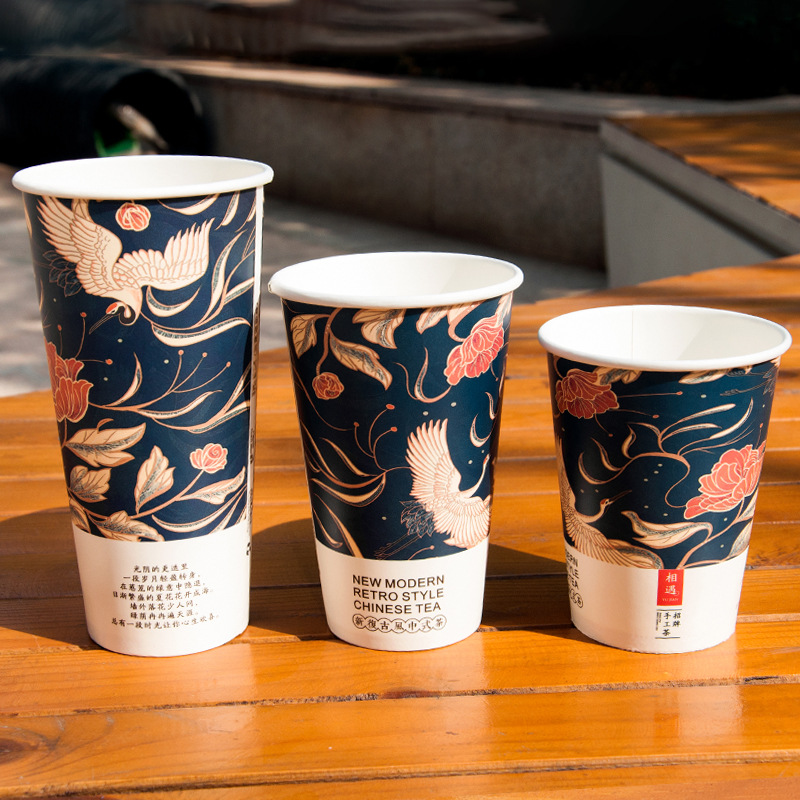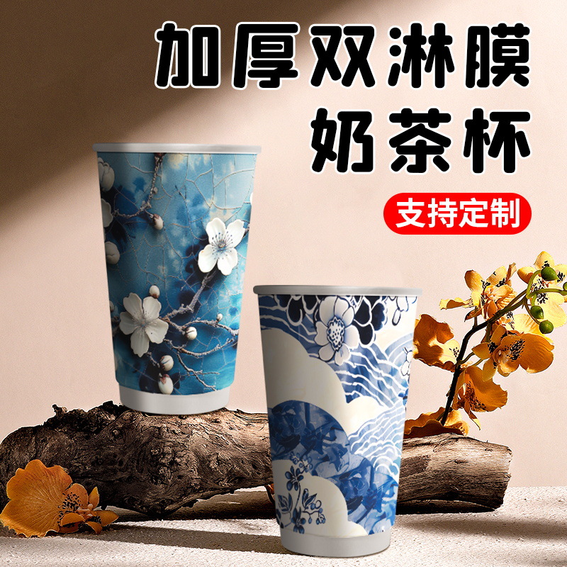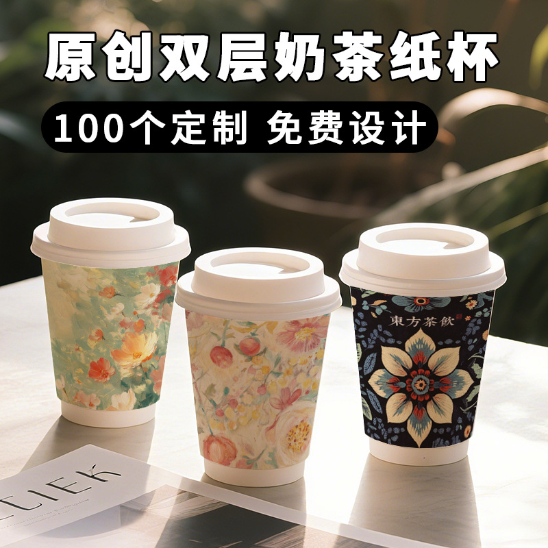 ミルクティー紙コップ使い捨て蓋付き喫茶店専用包装紙コップダブルフィルム厚いホットカップ業務用