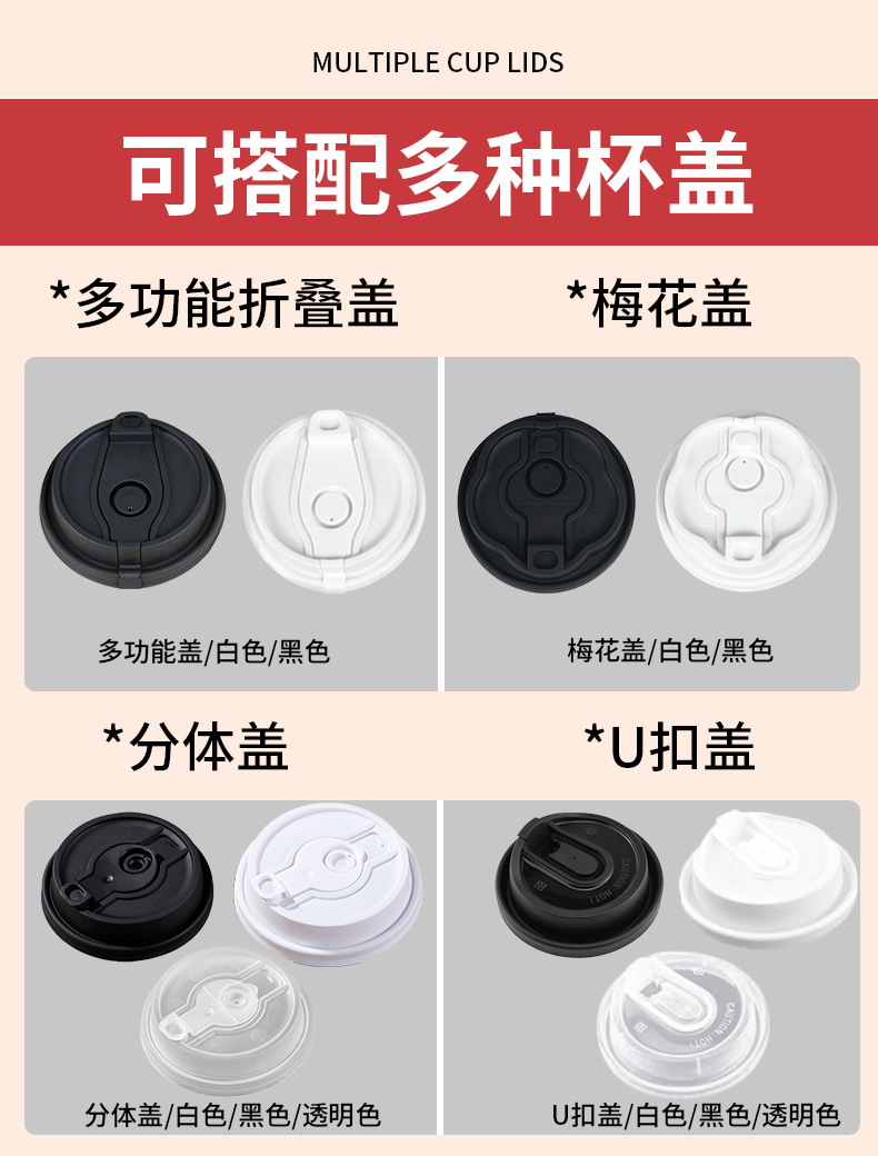加厚咖啡杯子 一次性奶茶纸杯带盖热饮打包商用纸杯封口熊猫logo
