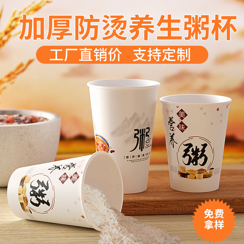 お粥カップ使い捨て商用蓋付き朝食紙コップ500ml八宝粥希少ご飯包装販売カップ
