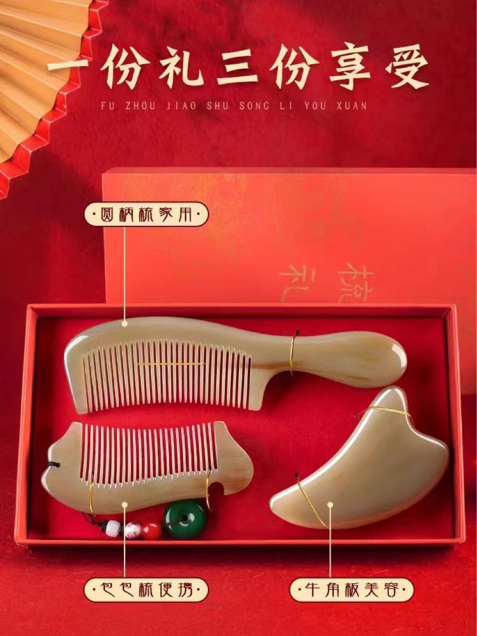 天然本物の牛角ヘッドマッサージスクレーピング経絡コーム大歯広歯帯電防止多機能コーム羊角コーム