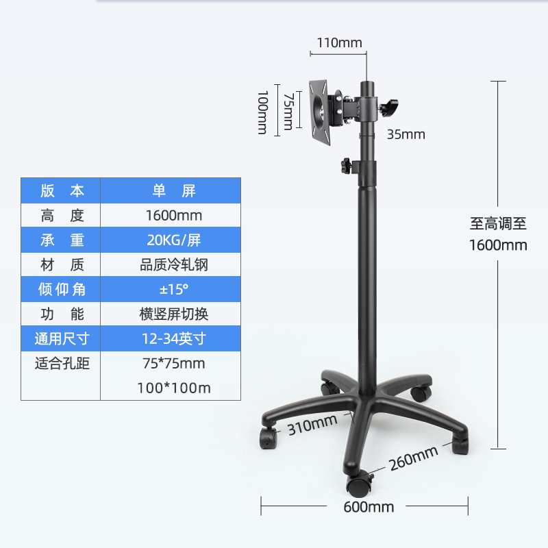 ディスプレイベースシングルヘッド部品液晶ディスプレイスタンド横縦回転ディスプレイコンピュータラック部品