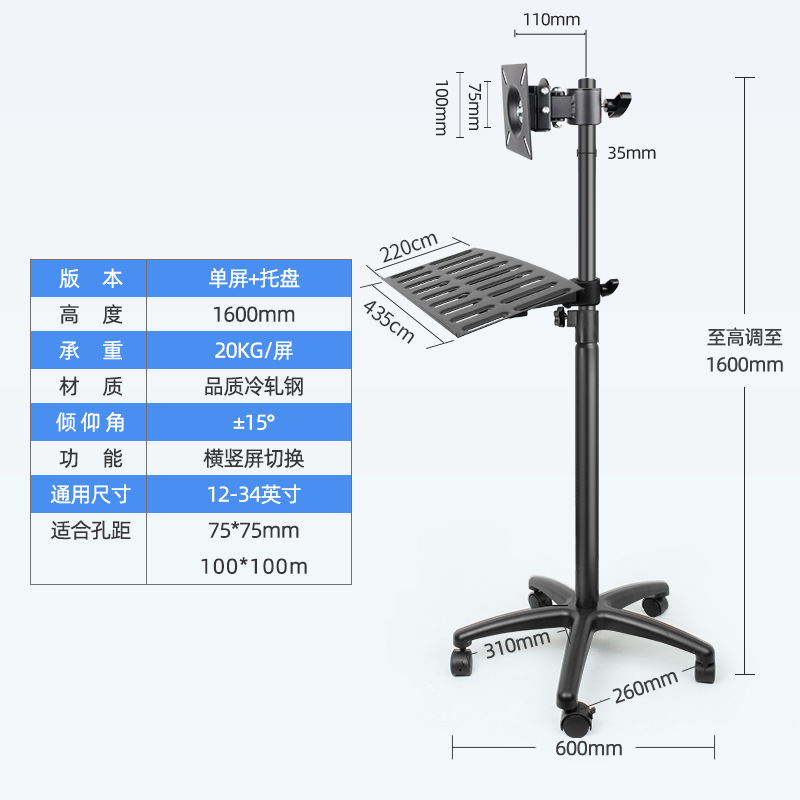 横縦スクリーン回転コンピュータディスプレイ床スタンドテレビ床スタンドディスプレイ吊り棚12-34インチ