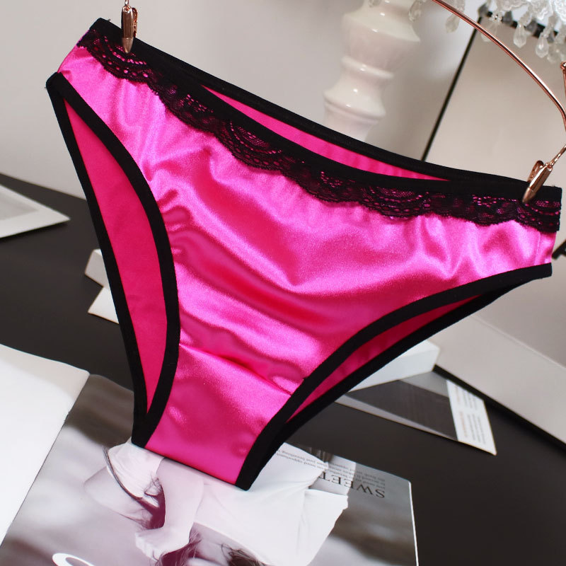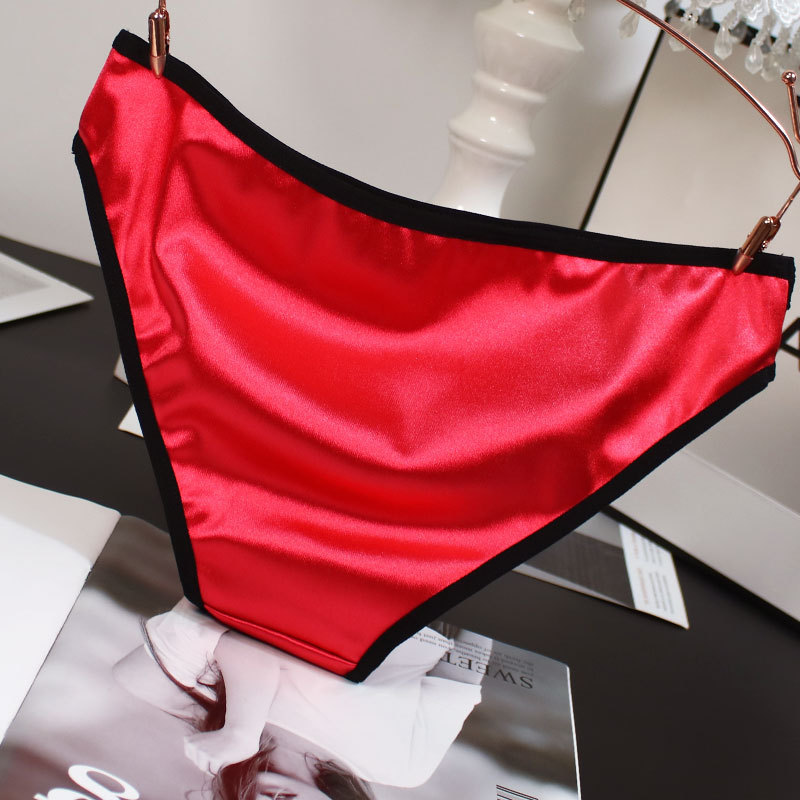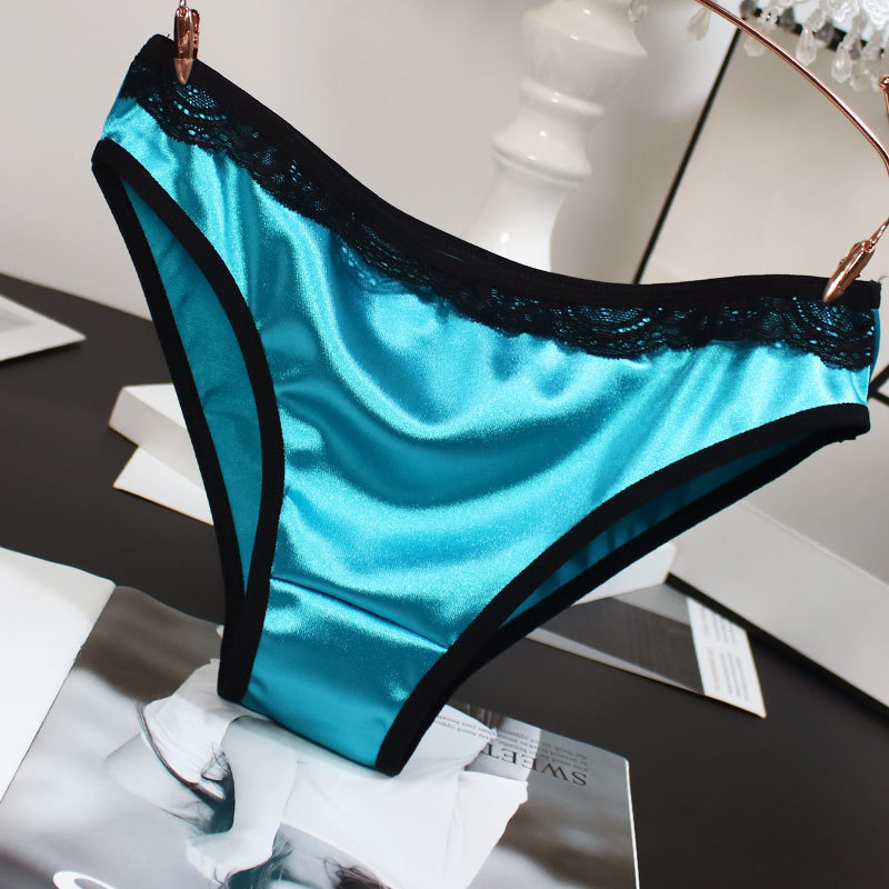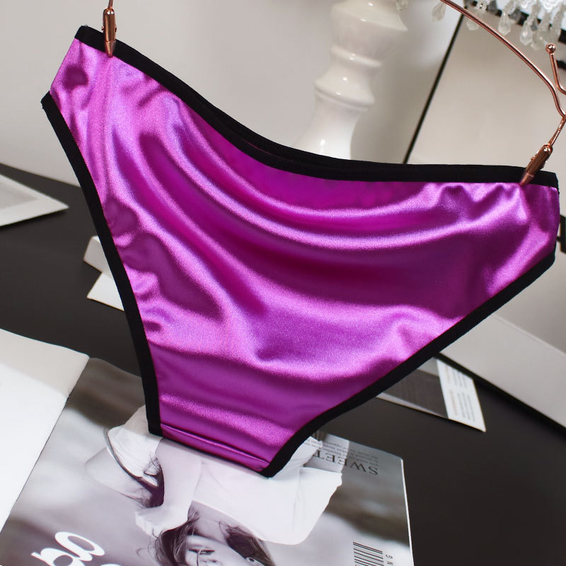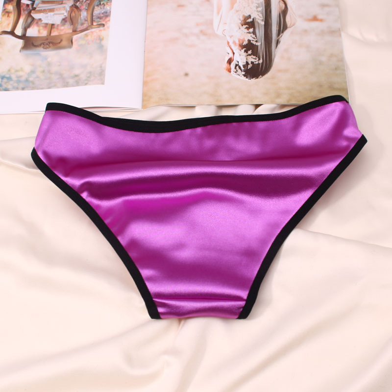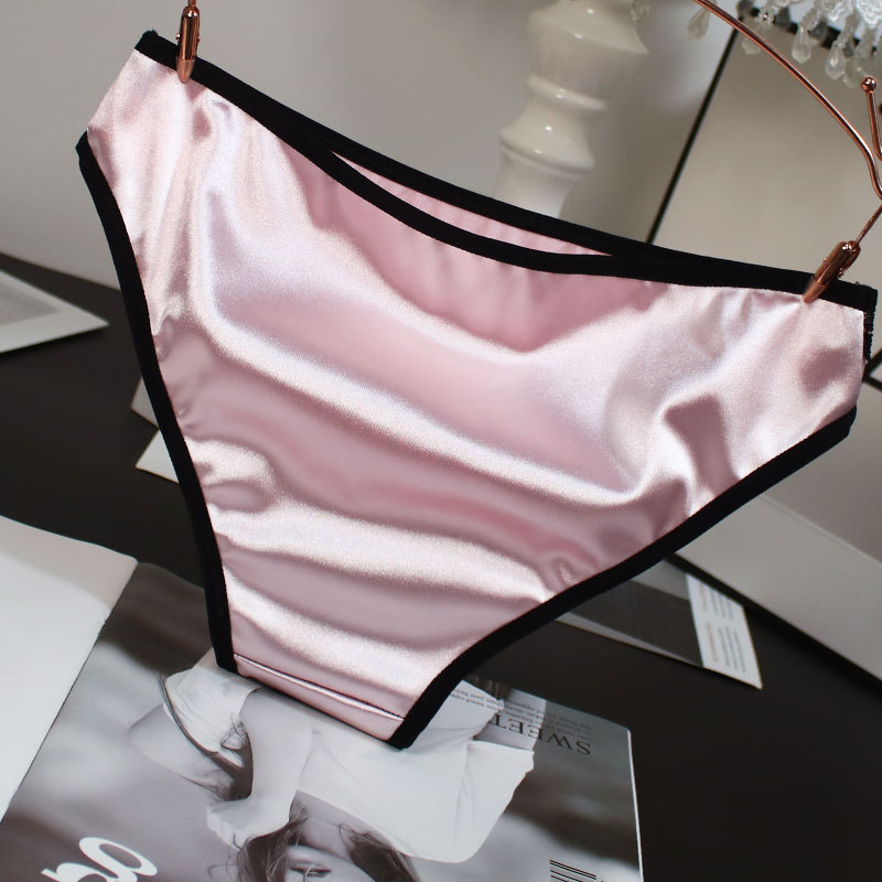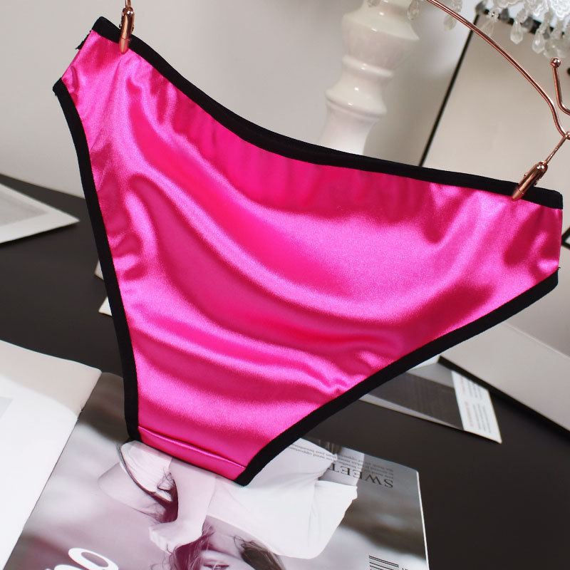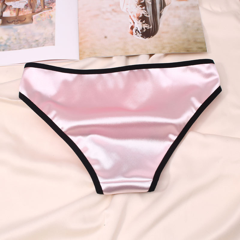 欧米風サテン素材の女性用下着、配色がおしゃれで通気性の良い純綿クロッチ、ローウエストでセクシーなレディースシンプル三角パンツ、セクシーな透かし彫りデザイン
