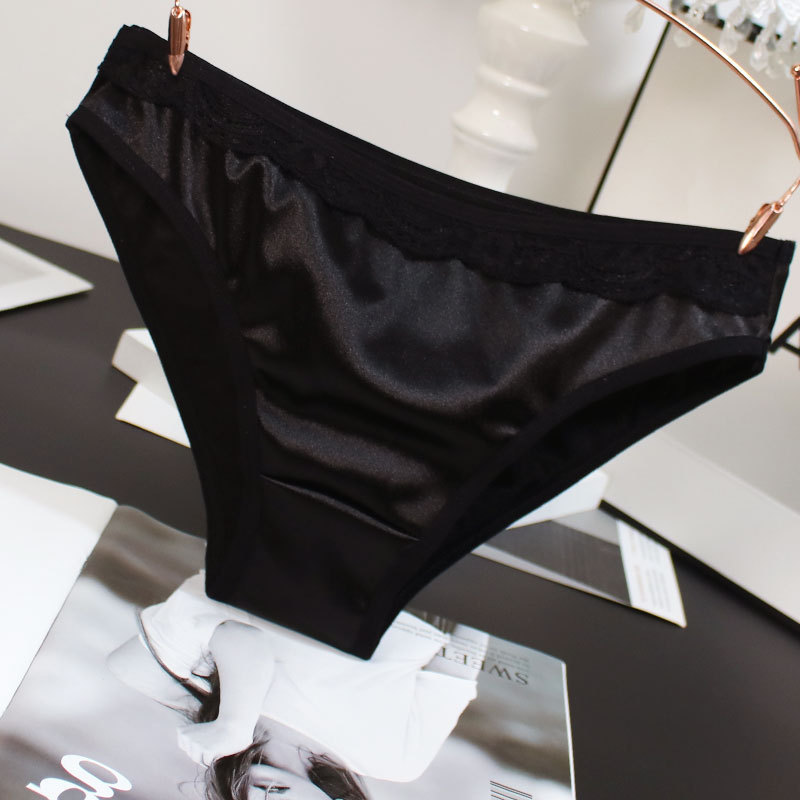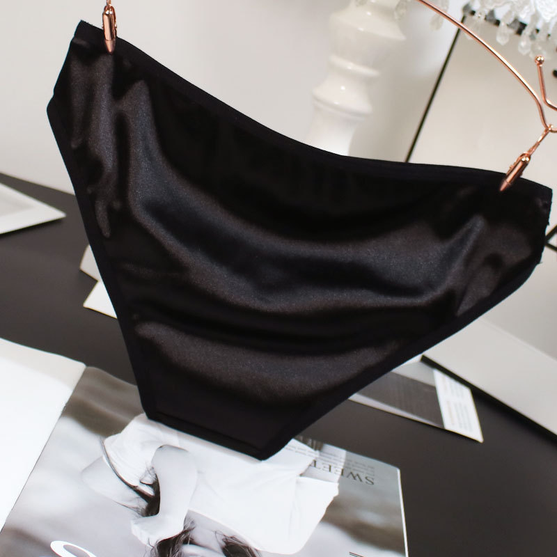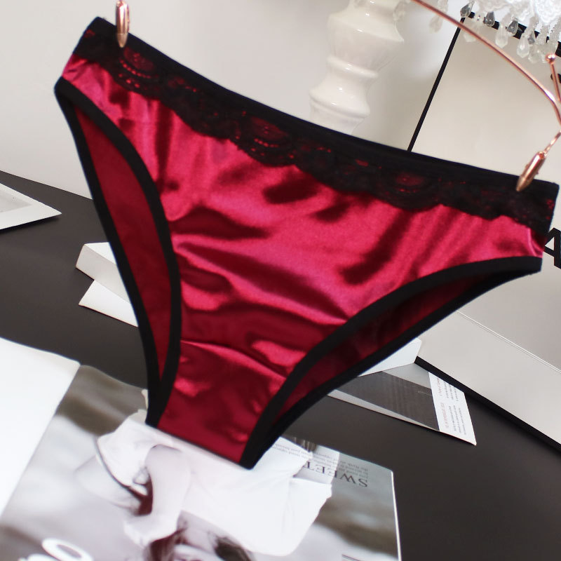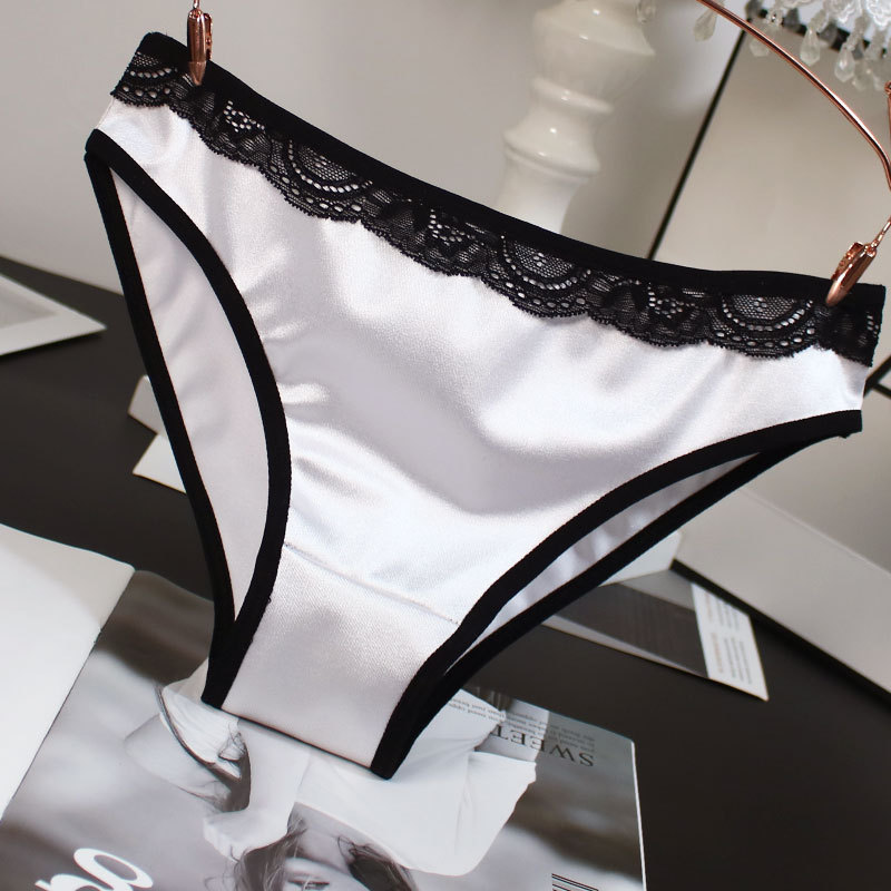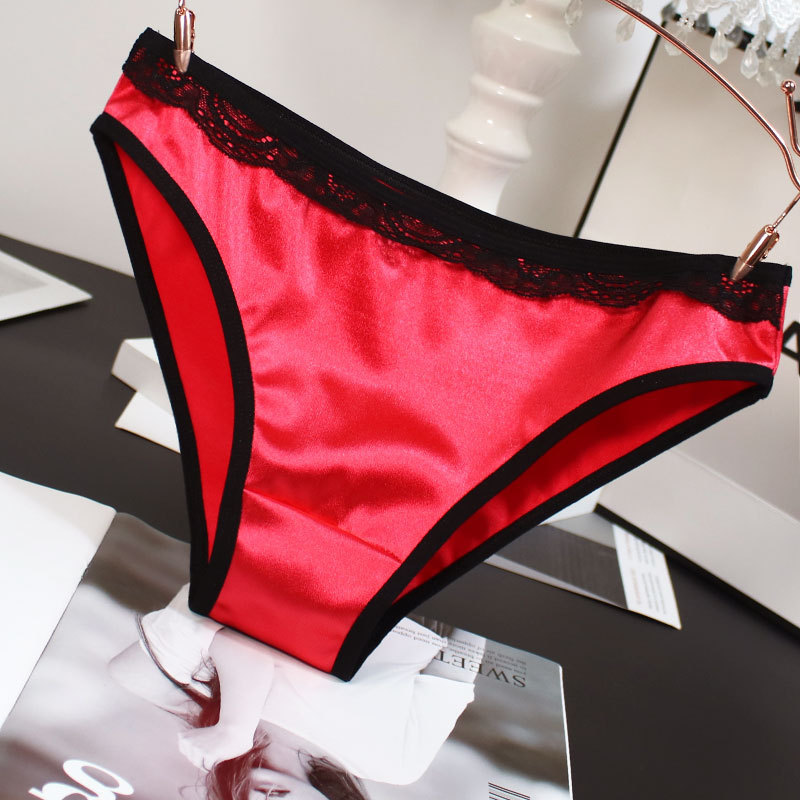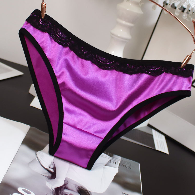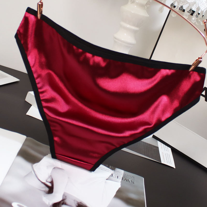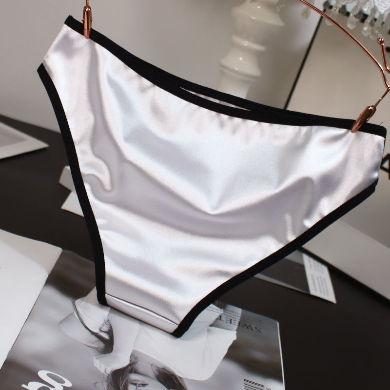 欧米風サテン素材の女性用下着、配色がおしゃれで通気性の良い純綿クロッチ、ローウエストでセクシーなレディースシンプル三角パンツ、セクシーな透かし彫りデザイン