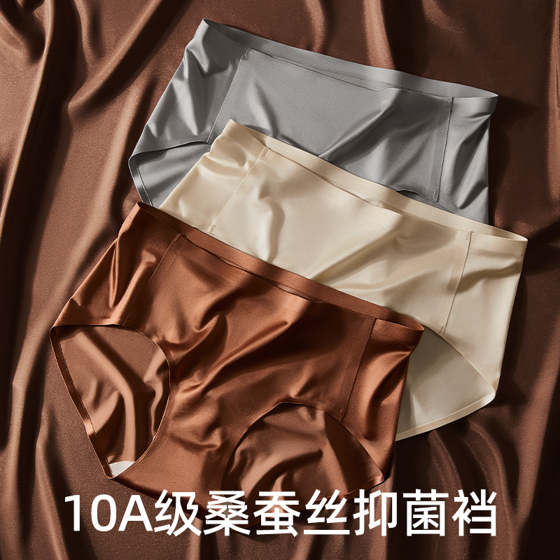 ハイエンドの軽い高級サテンアイスシルク下着女性のミッドウエストシームレスブリーフ 10A グレードマルベリーシルク抗菌通気性夏